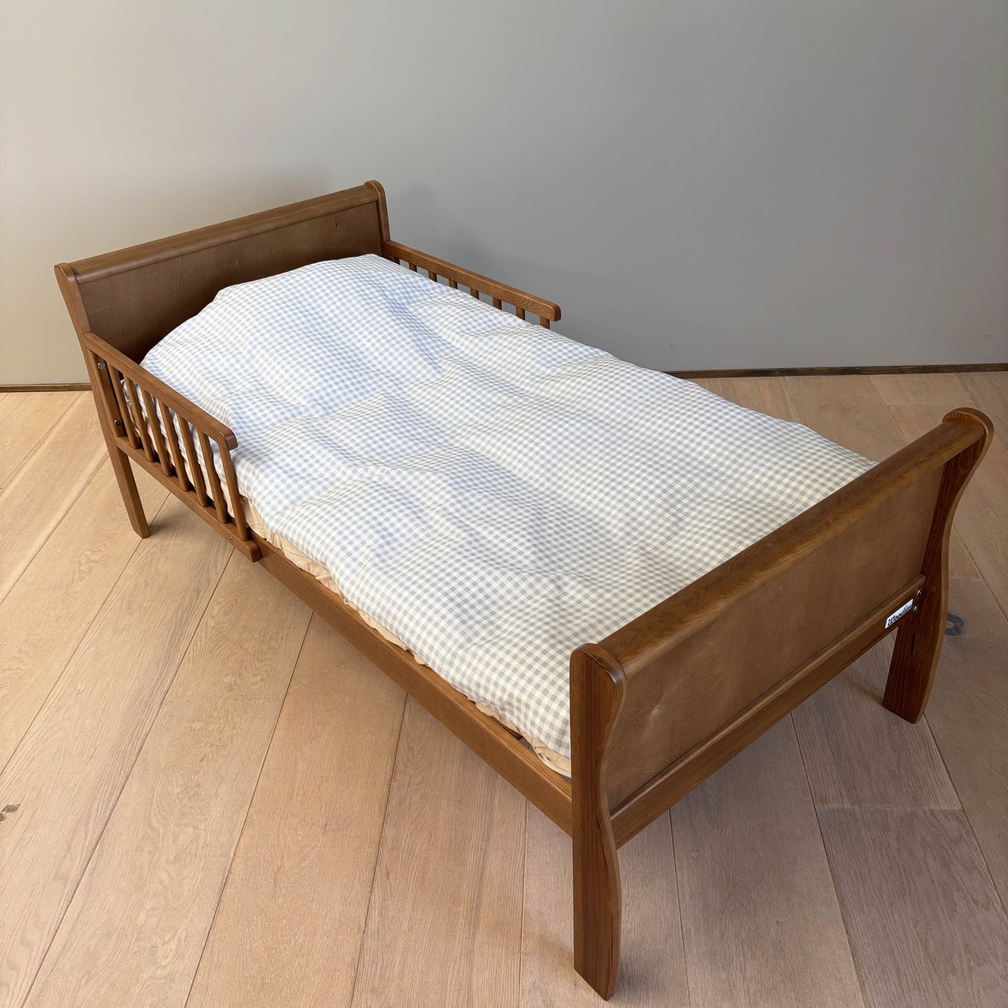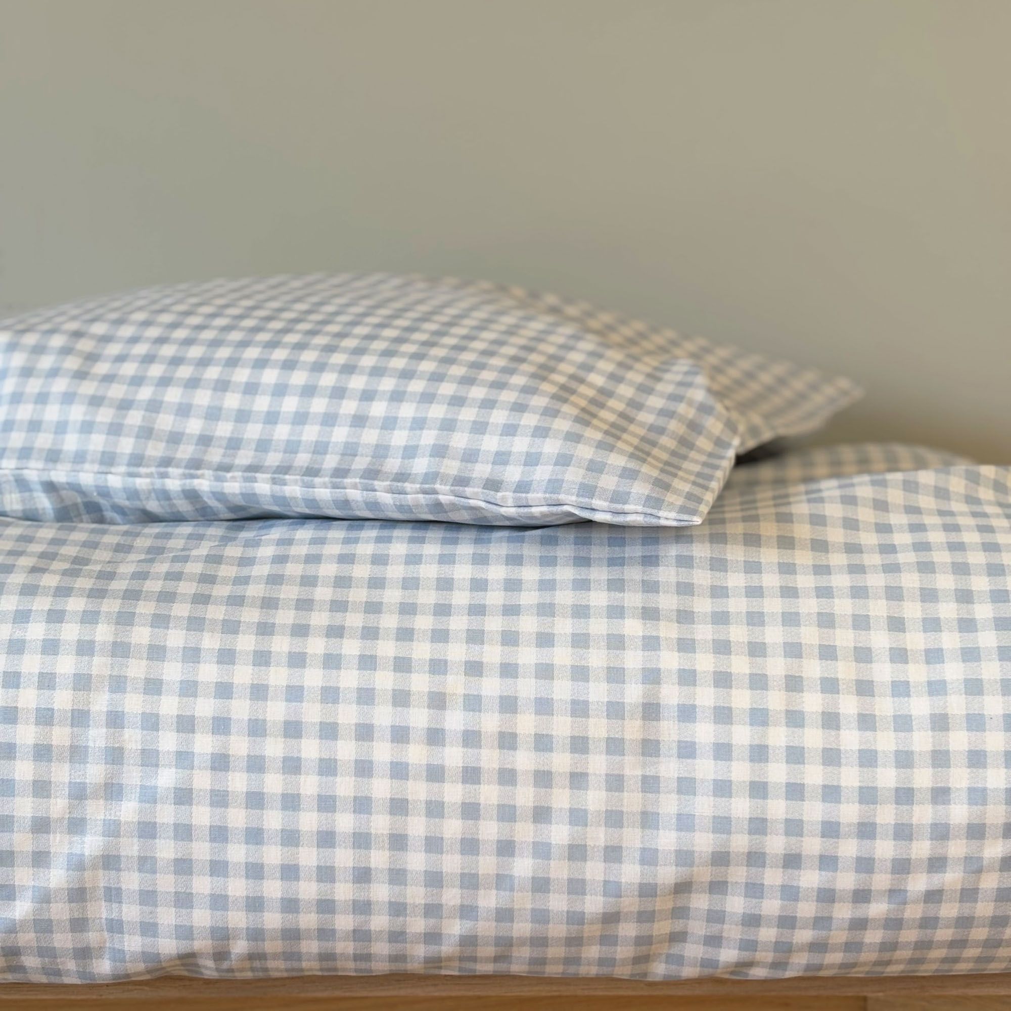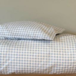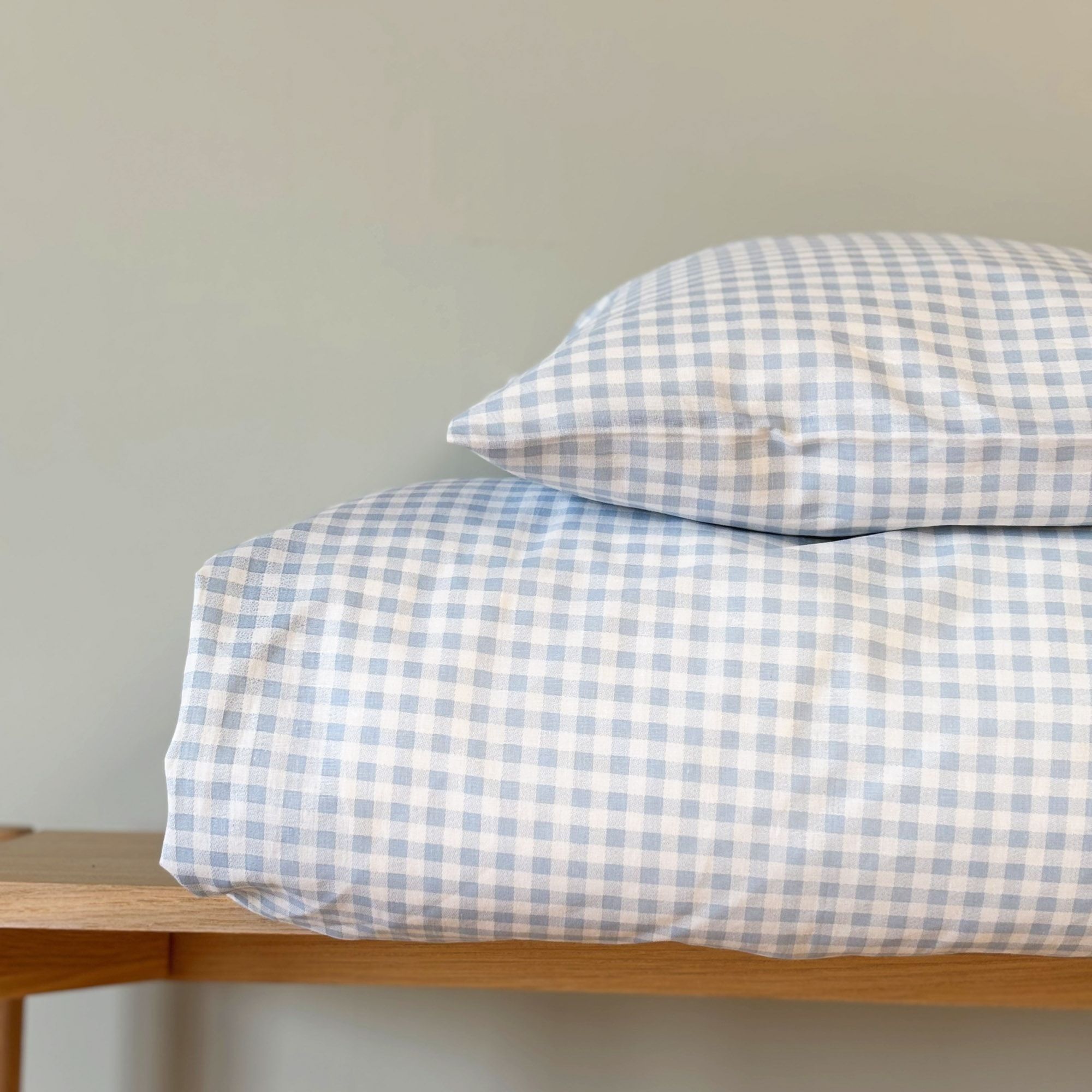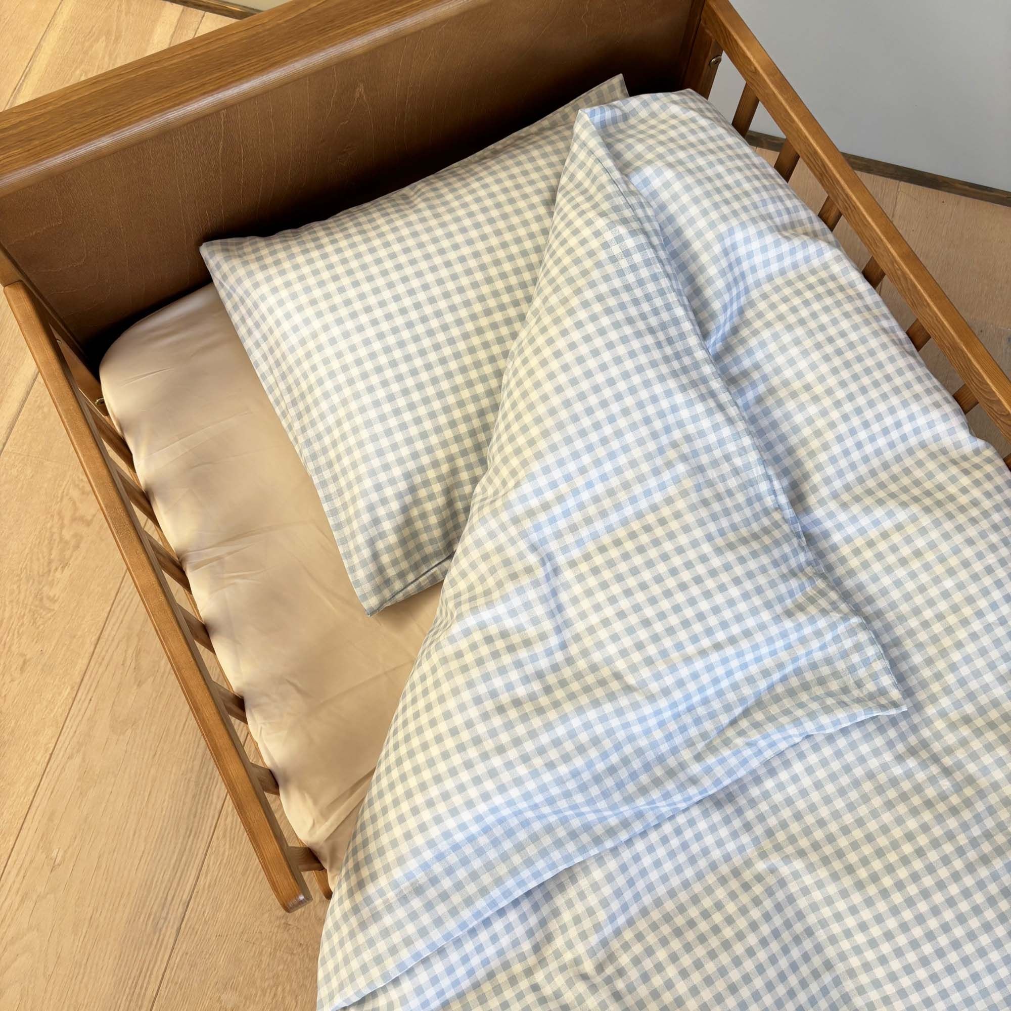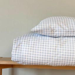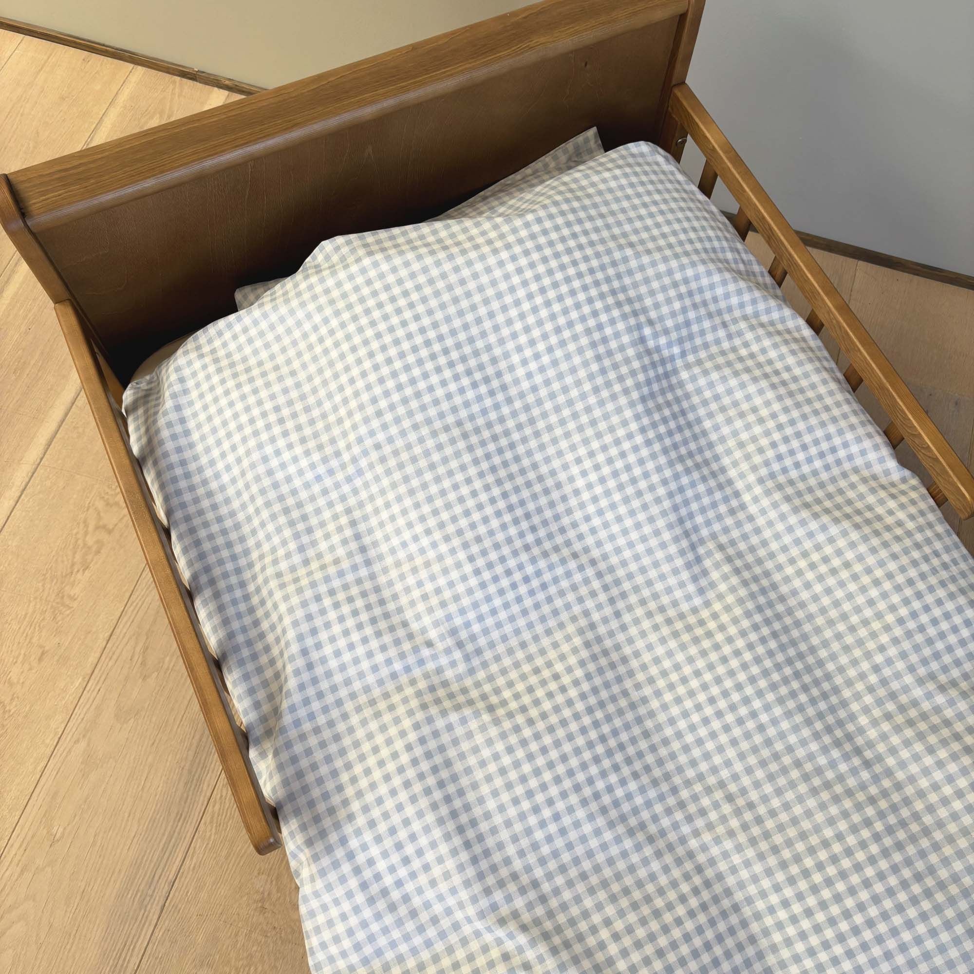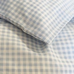 Blødt baby sengetøj i 100% bomuld, med tern. Produceret med lette og åndbare bomuldsfibre giver det sengesættet en følelse af blødhed, der gør at dynen vil falde natuligt rundt om dit barn. Balancen i naturlig komfort fra det bløde materiale og det hyggelige design, gør dette sæt til en sikker favorit hos dit barn.