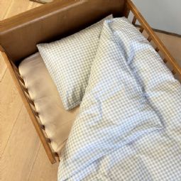 Det ternet design i dæmpede farver, skaber en afslappende stemning og hyggelige omgivelser til søvn. Baby sengetøjet passer til en almindelig babydyne størrelse og kan bruges i sengen, i babynesten, i barnevognen eller hvor end dynen medtages. Babydynen er ofte fast omkring barnet i mange af døgnets timer, da den skaber stor ro, genkendelighed, tryghed og varme for babyen - ikke kun den første tid, men ofte op til 2-3 års alderen. Det bruges derfor rigtig meget og bliver vasket ofte, og derfor ønsker de fleste også blødt sengetøj i bomuld af høj kvalitet.