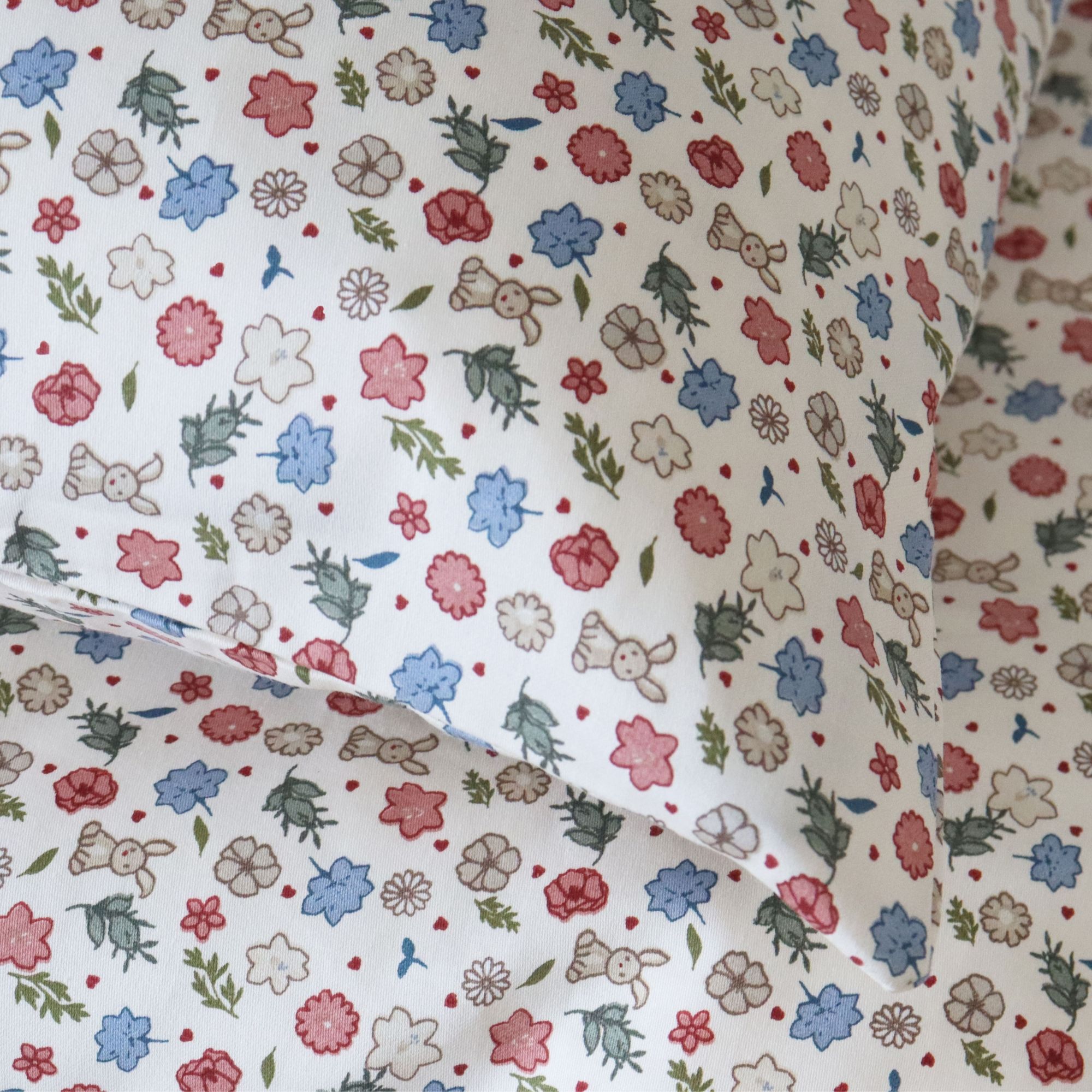 Dette fine baby sengesæt har et sødt og detaljerigt mønster med små blomster i forskellige farver. De mange små blomster giver sengesættet et livligt og hyggeligt udtryk, som passer perfekt til et børneværelse med bløde og naturlige farver.