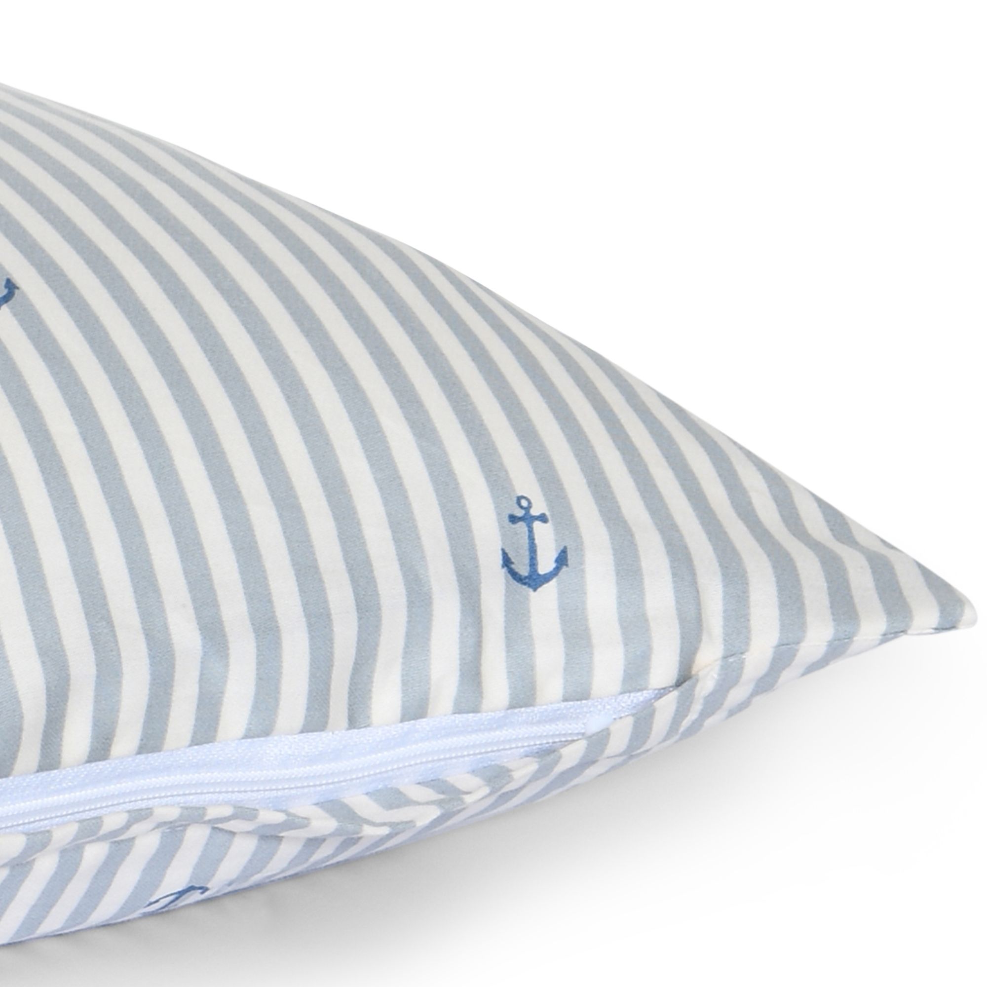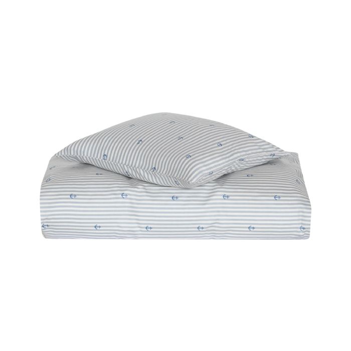 Dette fine baby sengesæt har et inspireret design med lyse striber og små blå anker. Kombinationen af de rolige farver og det enkle mønster giver sengesættet et friskt og hyggeligt udtryk, der passer perfekt til et lyst børneværelse.