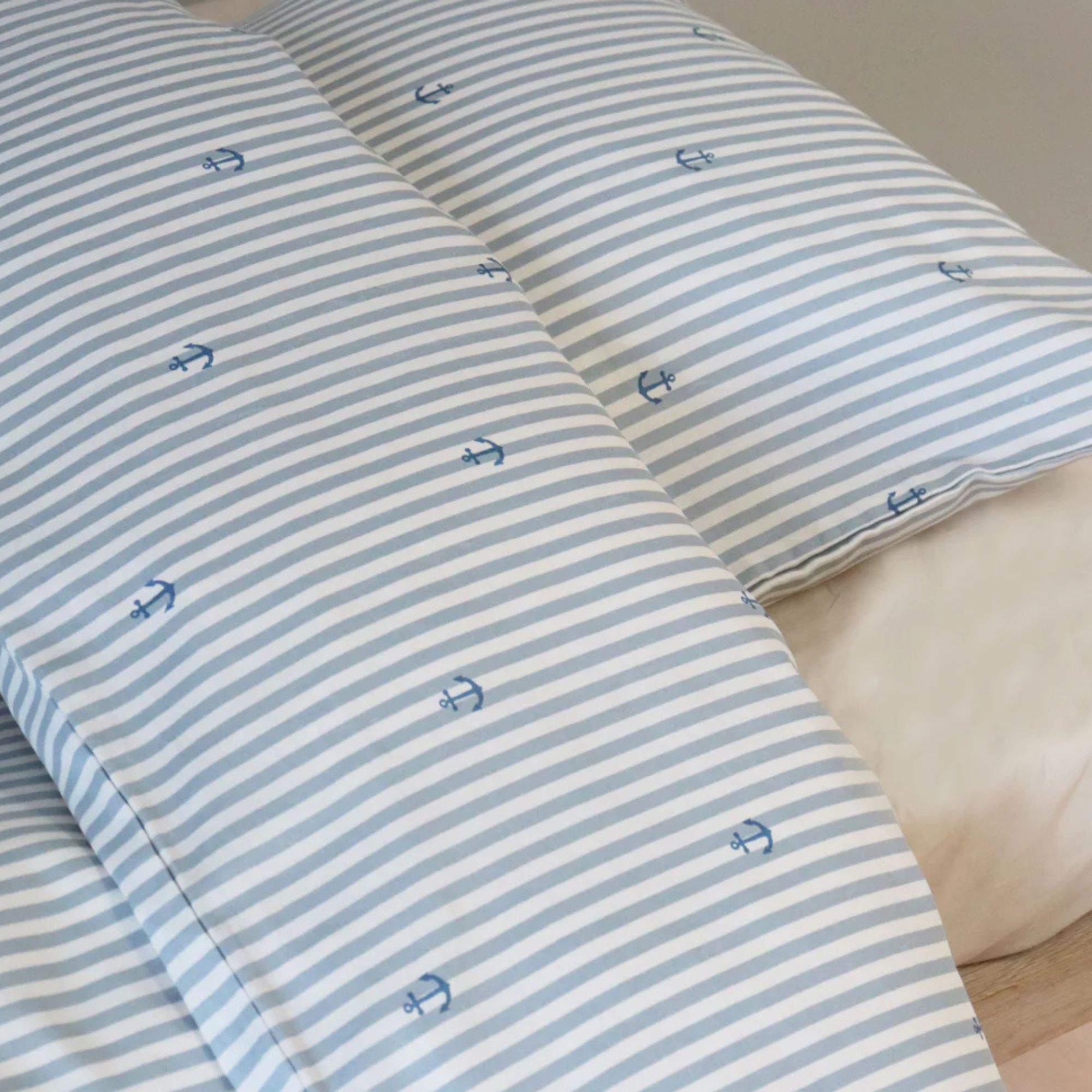 Baby sengetøj 70x100 cm - 100% økologisk bomuldssatin - Stribet med anker