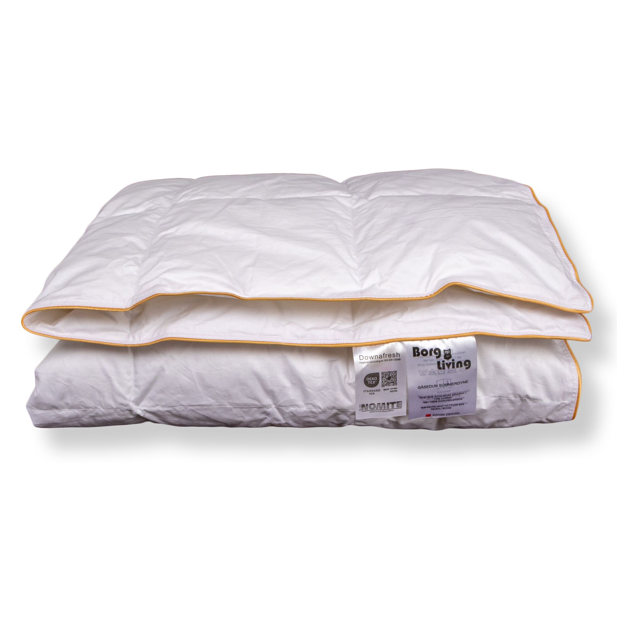 Denne serie af sommerdyner med gåsedun har en lang række certificeringer, som er din garanti for en god og hygiejnisk kvalitetsdyne. Dynen er både NOMITE- og Downafresh certificeret, hvilket garanterer, at dunene er renset og forarbejdet efter strenge europæiske standarder og at de stammer fra producenter, der overholder reglerne for dyrevelfærd.