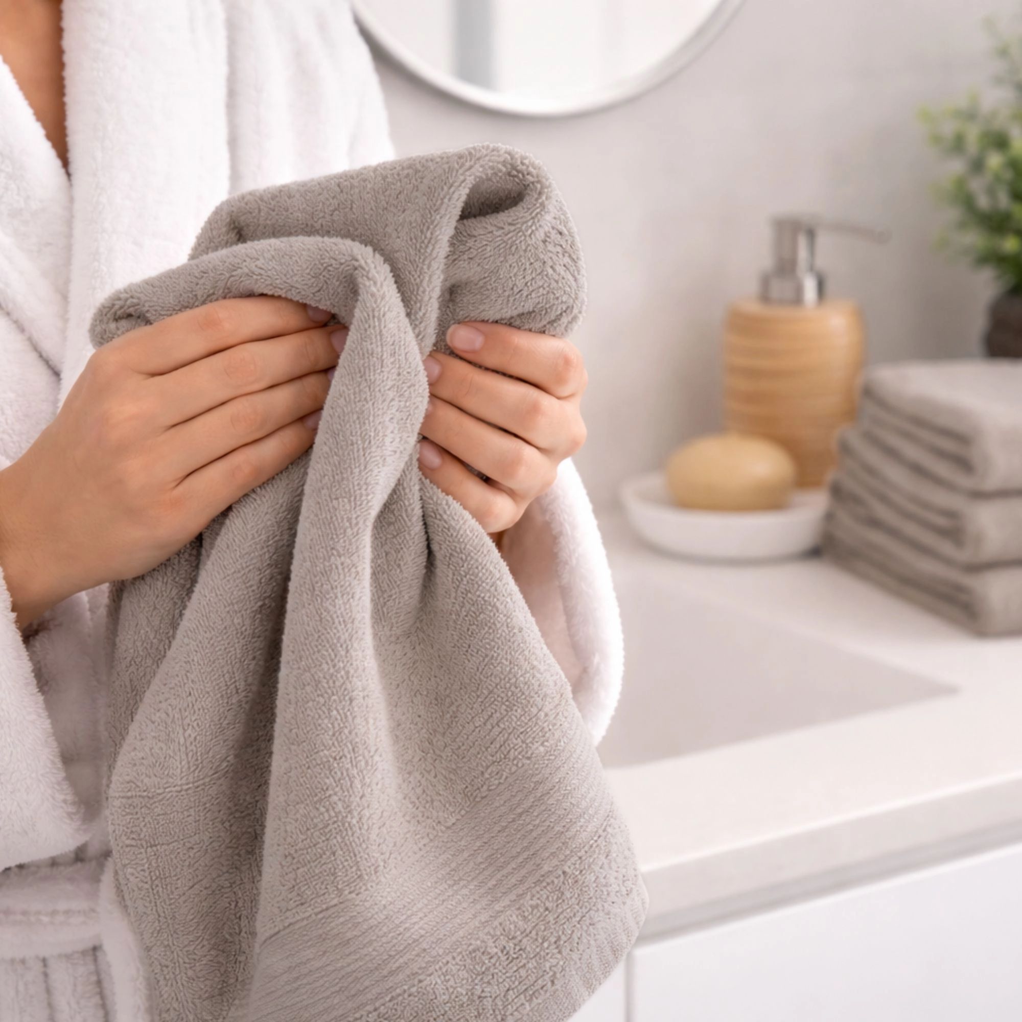 Vi anbefaler altid, at helt nye håndklæder lægges i blød i koldt vand før første vask - Således forbedre du håndklædernes absorberingsevne. Derudover kan håndklæderne med fordel tørretumbles for at bevare deres fylde og blødhed.