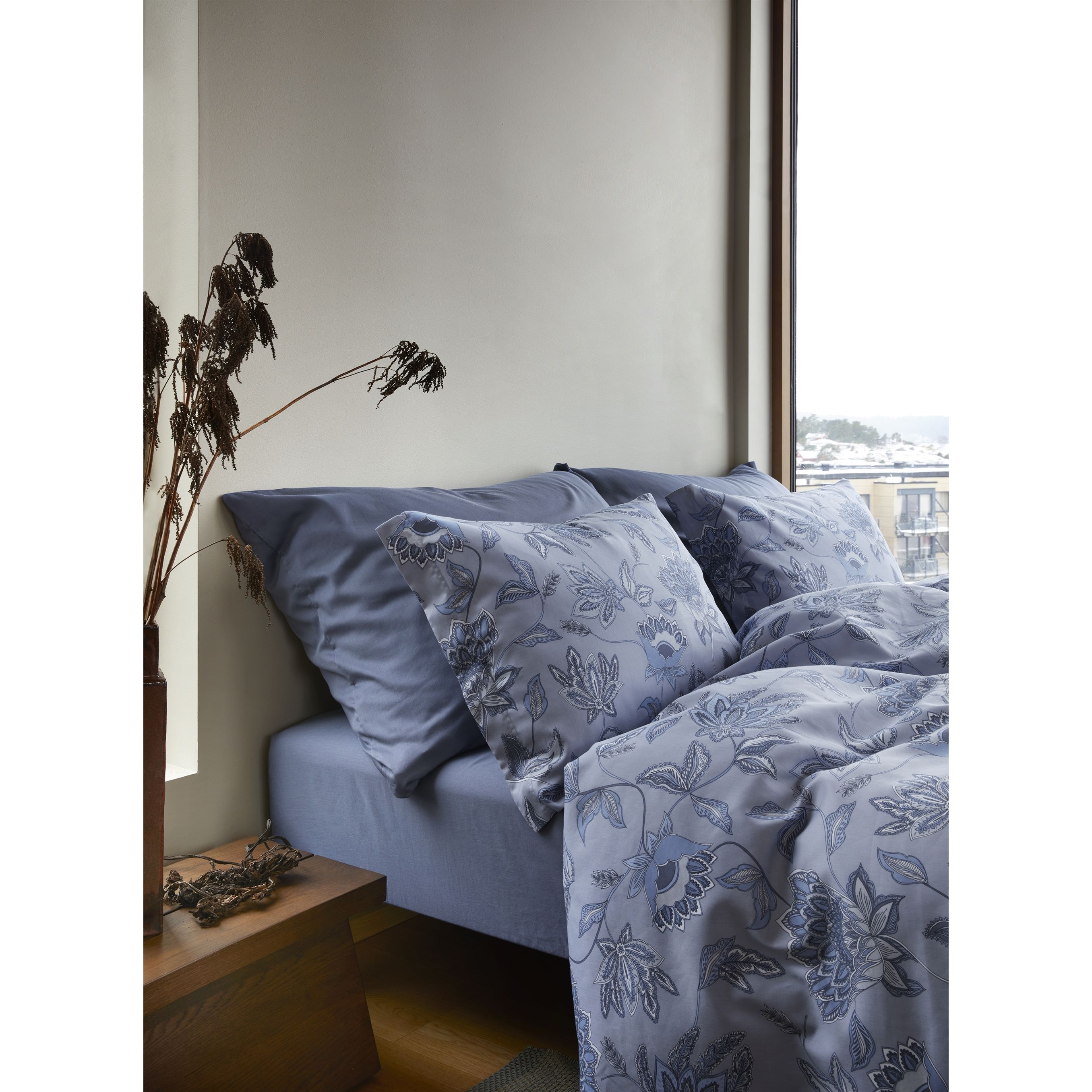 Dette blomstret Mille dobbelt sengesæt er fremstillet af 100% bomuld og vævet med en satinvævning, hvilke giver sættet en glat, blød og luksuriøs overflade med en let glans. Satinvævningen betyder, at stoffet har flere tråde på overfladen, hvilke resulterer i en mere glansfuld og silkeblød følelse. Det gør dobbelt sengetøjet ikke blot behageligt mod huden, men også elegant at se på, hvilke giver soveværelset et eksklusivt look. Den høje kvalitet af bomulden sikrer, at materialet både er åndbart og fugtabsorberende, hvilket skaber et behageligt sovemiljø hele natten - varmt om vinteren og køligt om sommeren. Bomuldens naturlige egenskaber gør samtidig sengetøjet slidstærkt og let at vedligeholde, selv efter gentagne vaske.