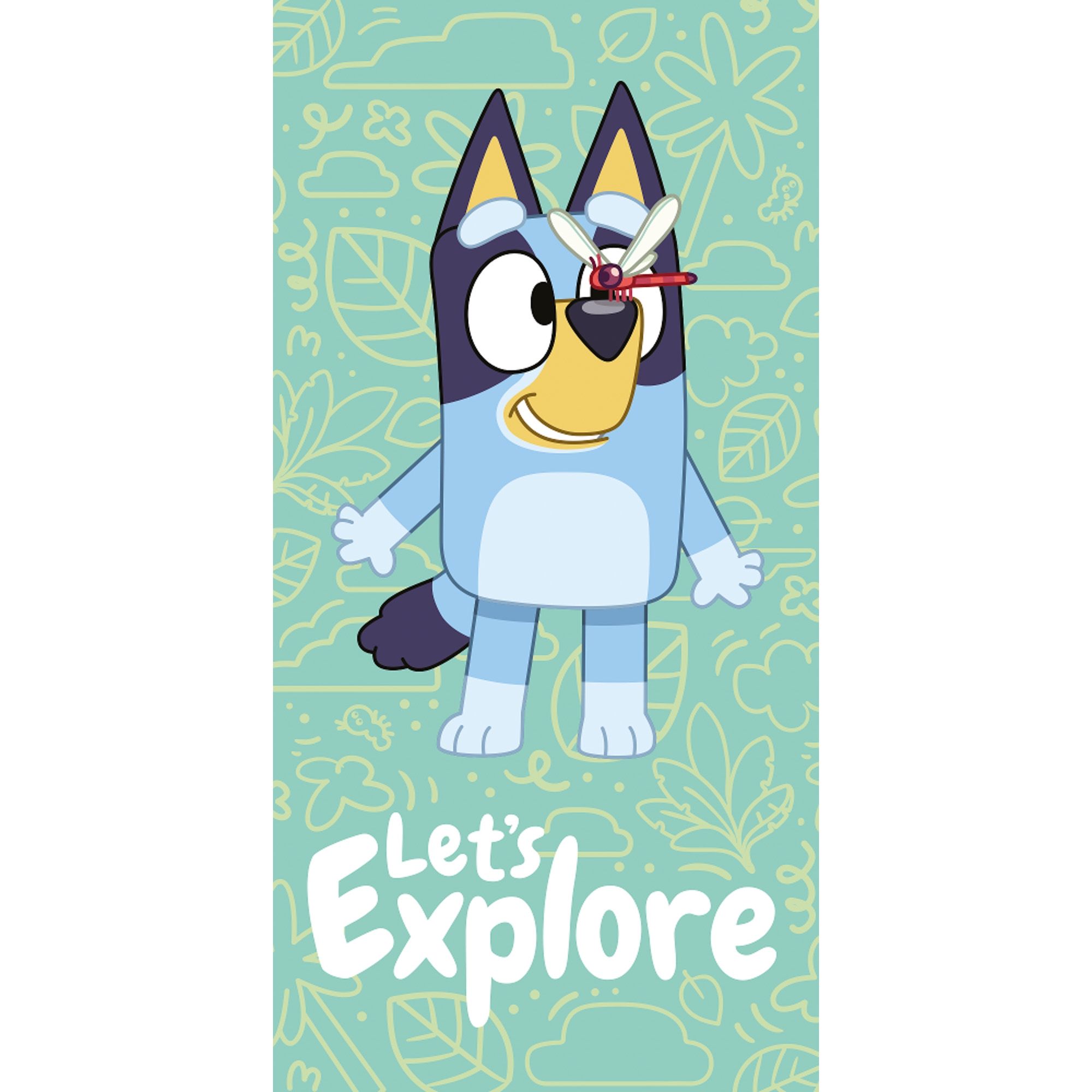 Blødt badehåndklæde i 100% bomuld, med et sødt motiv af Bluey - Let's Explore. Håndklædets søde motiv, vil helt sikkert bringe et smil frem på den lille fan, så badetid bliver sjovere. Balancen i naturlig komfort fra det bløde materiale og det hyggelige Bluey design, gør dette håndklæde til en sikker favorit hos dit barn.