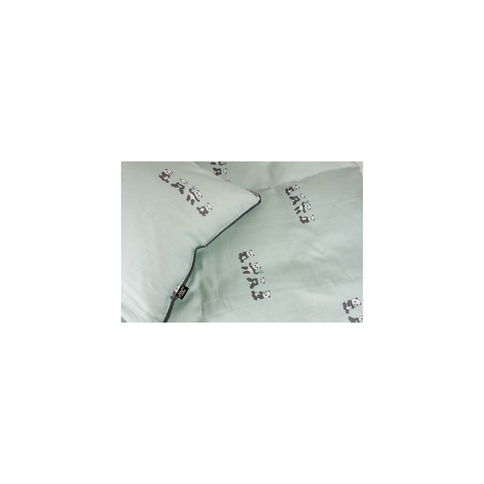 Lækkert sengetøj i 100% økologisk bomuldssatin, med et sødt motiv af pandaer. Vævet af merceriserede garner, som giver sengesættet en følelse af blødhed, der gør at dynen føles dejlig at sove med. Balancen i naturlig egenskaber og komfort fra det bløde materiale, gør dette sæt til en sikker favorit.