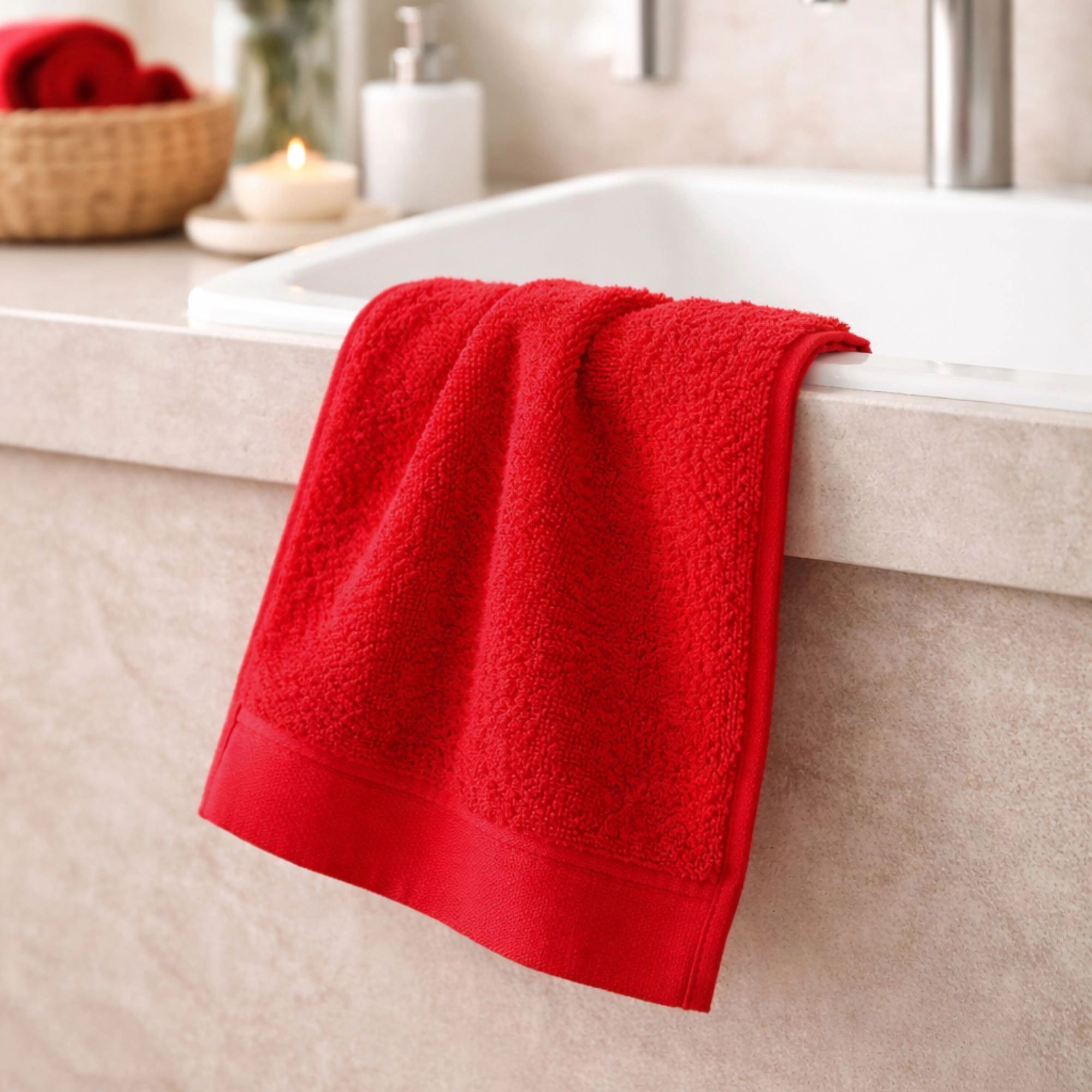 Lækkert bomuldshåndklæde i rød fra By Borg