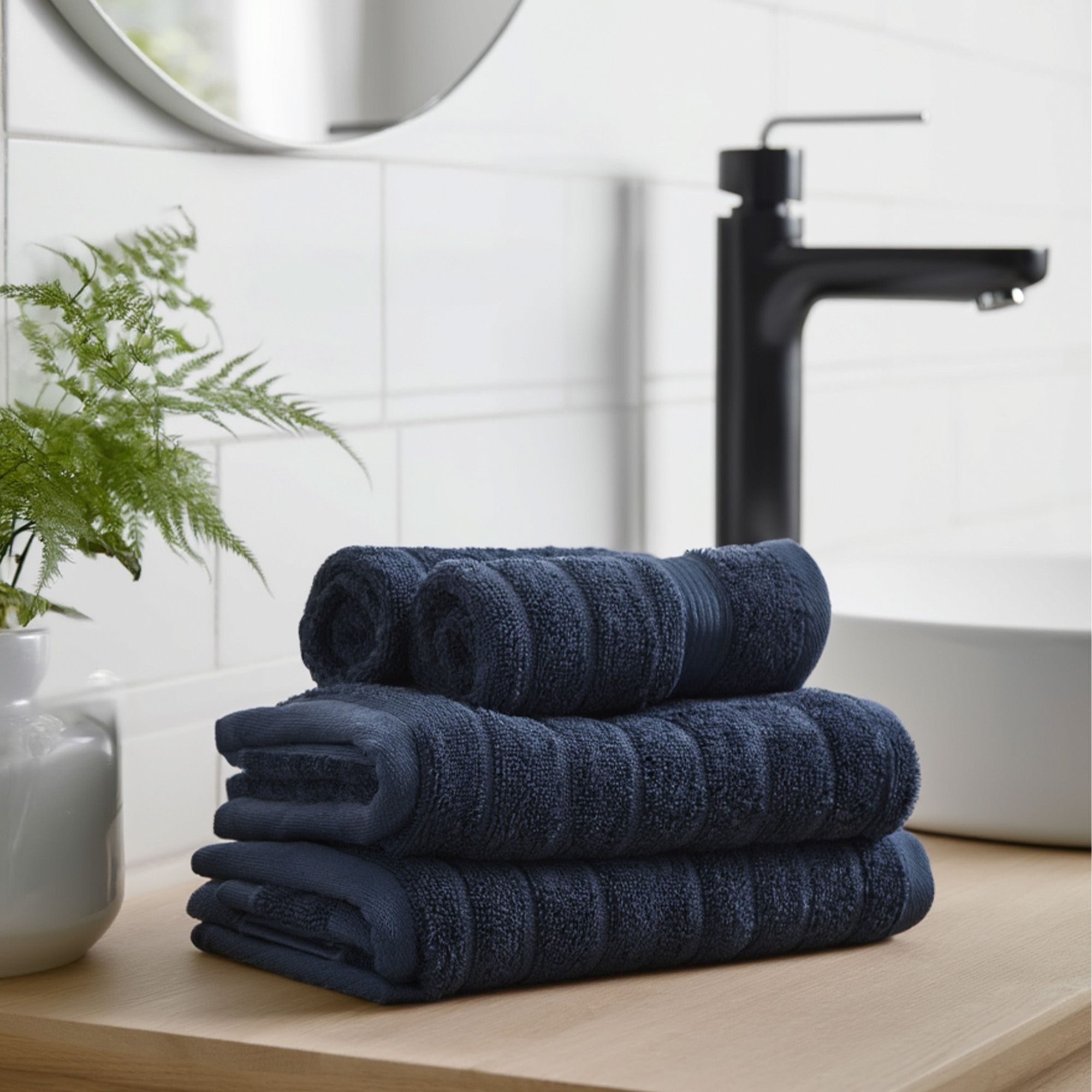 Skab et gennemført og stilrent badeværelse med dette komplette håndklædesæt med 12 stk. Her får du en praktisk og elegant løsning, hvor alle størrelser er samlet i én pakke. Det klassiske og enkelte design giver et tidløst udtryk, som passer perfekt ind i både moderne og traditionelle hjem. Badehåndklæderne er fremstillet i 100% kæmmet bomuld, hvor de finere og længere fibre giver en ekstra blød og glat overflade. Resultatet er en behagelig kvalitet, der føles skånsom mod huden og samtidig sikrer en effektiv absorbering i hverdagen.