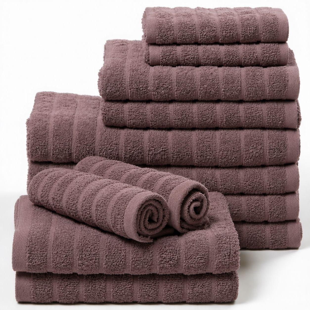 Skab et gennemført og stilrent badeværelse med dette komplette håndklædesæt med 12 stk. Her får du en praktisk og elegant løsning, hvor alle størrelser er samlet i én pakke. Det klassiske og enkelte design giver et tidløst udtryk, som passer perfekt ind i både moderne og traditionelle hjem. Badehåndklæderne er fremstillet i 100% kæmmet bomuld, hvor de finere og længere fibre giver en ekstra blød og glat overflade. Resultatet er en behagelig kvalitet, der føles skånsom mod huden og samtidig sikrer en effektiv absorbering i hverdagen.