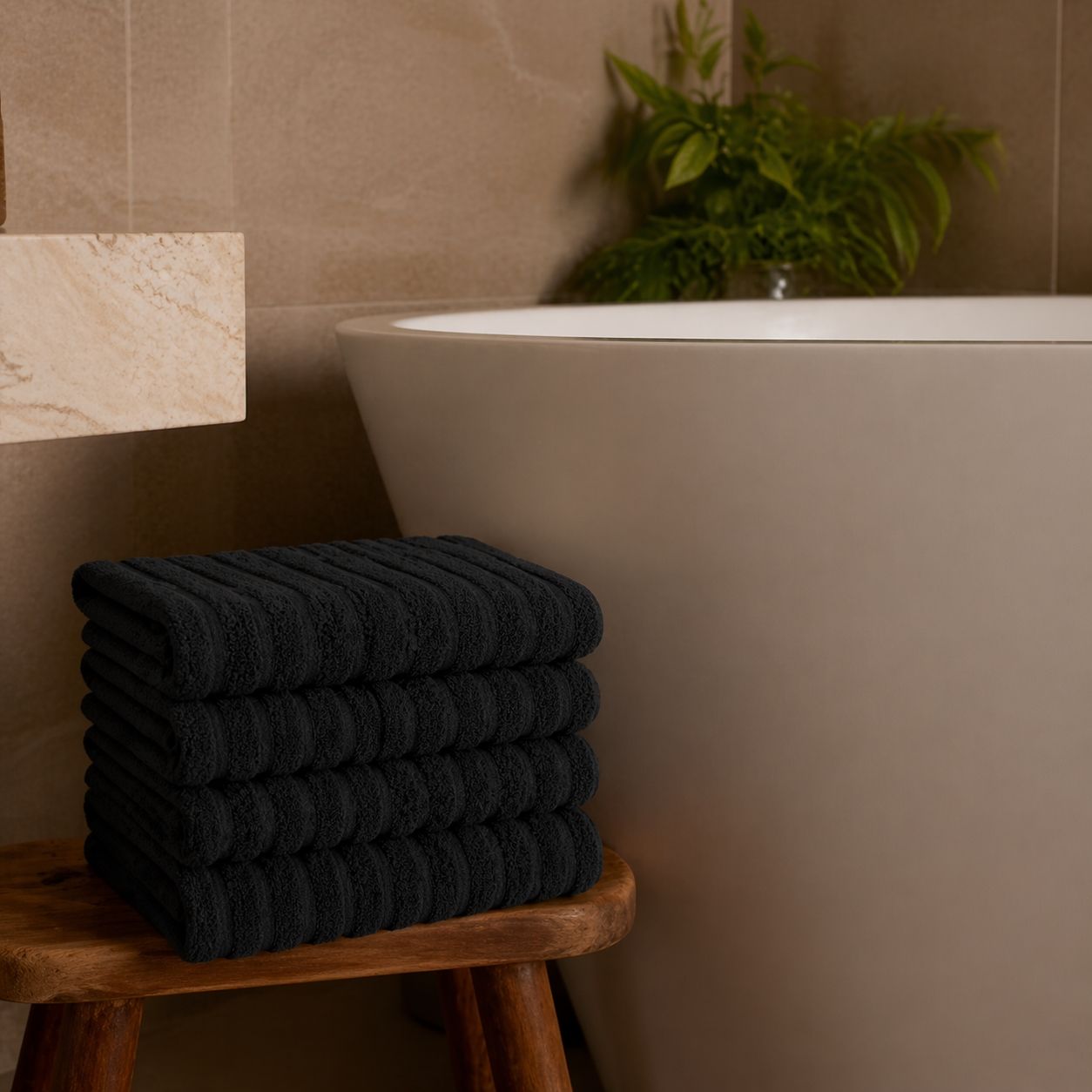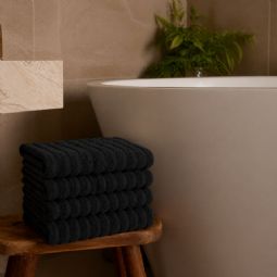 Opgrader dit badeværelse med disse stilfulde håndklæder i en sort nuance, der tilfører ro og elegance til indretningen. Det klassiske og enkelte design giver et tidløst udtryk, som passer perfekt ind i både moderne og traditionelle hjem. Håndklæderne er fremstillet i 100% kæmmet bomuld, hvor de finere og længere fibre giver en ekstra blød og glat overflade. Resultatet er en behagelig kvalitet, der føles skånsom mod huden og samtidig sikrer en effektiv absorbering i hverdagen.