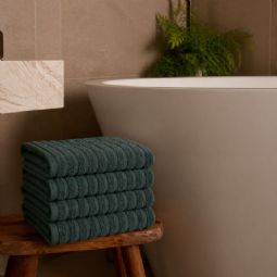 Opgrader dit badeværelse med disse stilfulde badehåndklæder i en mørkegrøn nuance, der tilfører ro og elegance til indretningen. Det klassiske og enkelte design giver et tidløst udtryk, som passer perfekt ind i både moderne og traditionelle hjem. Badehåndklæderne er fremstillet i 100% kæmmet bomuld, hvor de finere og længere fibre giver en ekstra blød og glat overflade. Resultatet er en behagelig kvalitet, der føles skånsom mod huden og samtidig sikrer en effektiv absorbering i hverdagen.