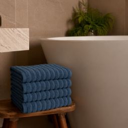 Blå gæstehåndklæder i kæmmet bomuld 30x50 cm - 2-pak