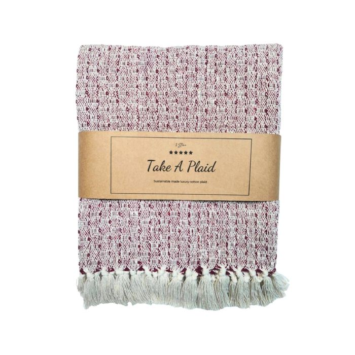 Skab en hyggelig og stilfuld stemning i dit hjem med denne smukke bomulds plaid fra Take a plaid. Plaiden er fremstillet i 100% recycled bomuld, hvilket gør den både blød, komfortabel og til et mere bæredygtigt valg.