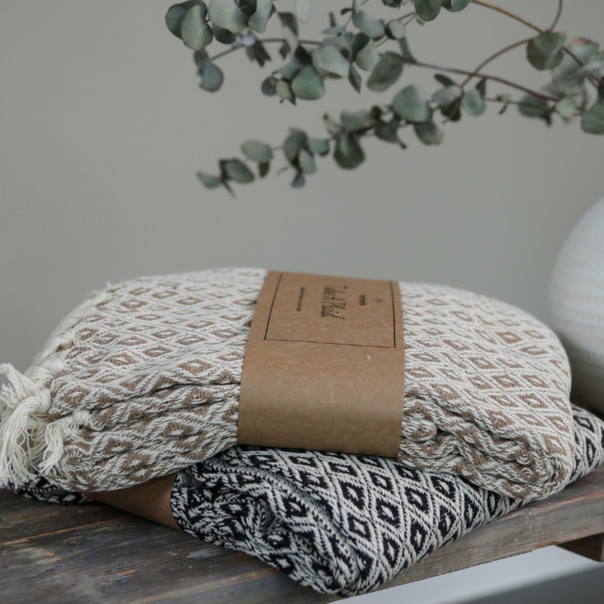 Skab en hyggelig og stilfuld stemning i dit hjem med denne smukke bomulds plaid fra Take a plaid. Plaiden er fremstillet i 100% recycled bomuld, hvilket gør den både blød, komfortabel og til et mere bæredygtigt valg.