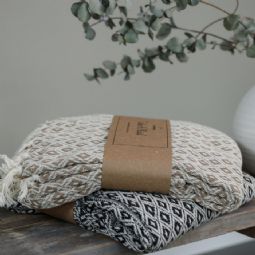 Den er også perfekt at tage med udenfor, hvor den skaber ekstra hygge og varme på kolde aftener på terrassen. Med sine dekorative frynser og tidløse design er denne bomuldsplaid både praktisk og dekorativ.