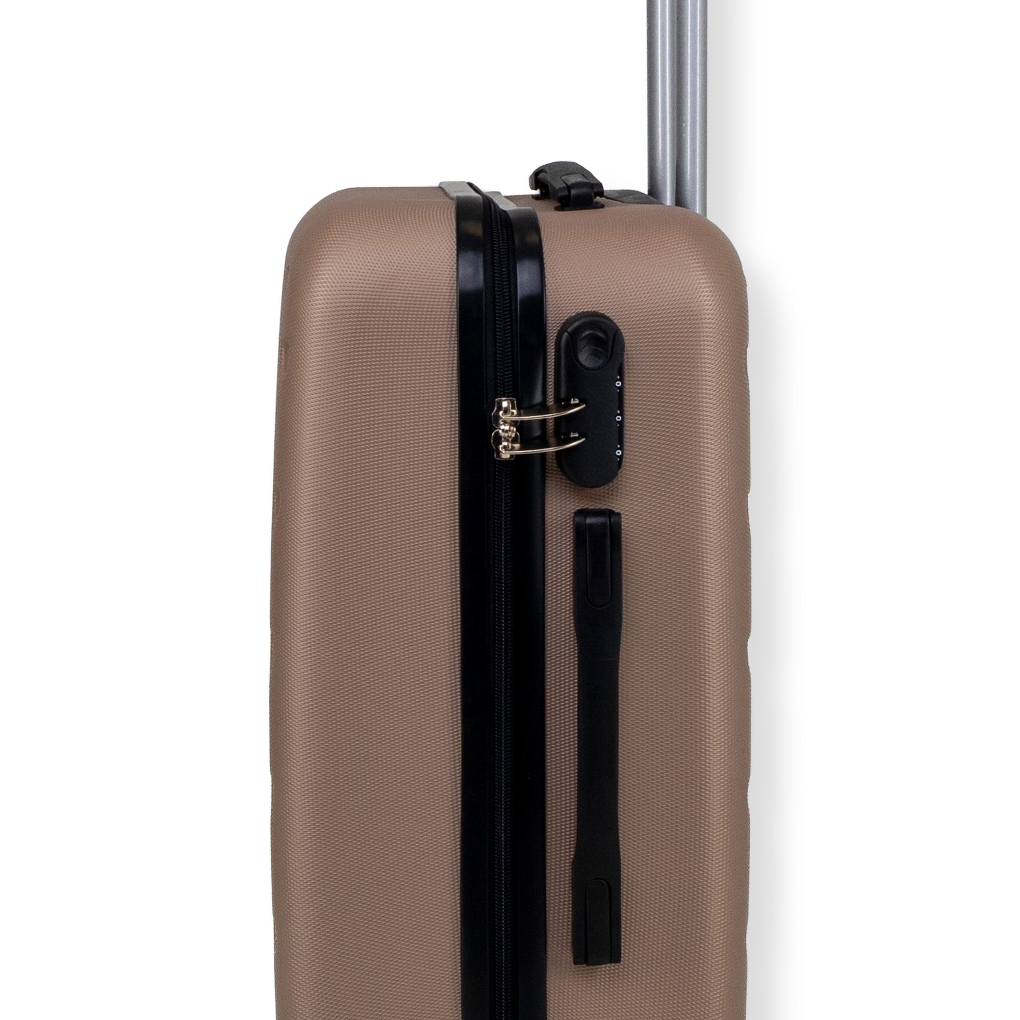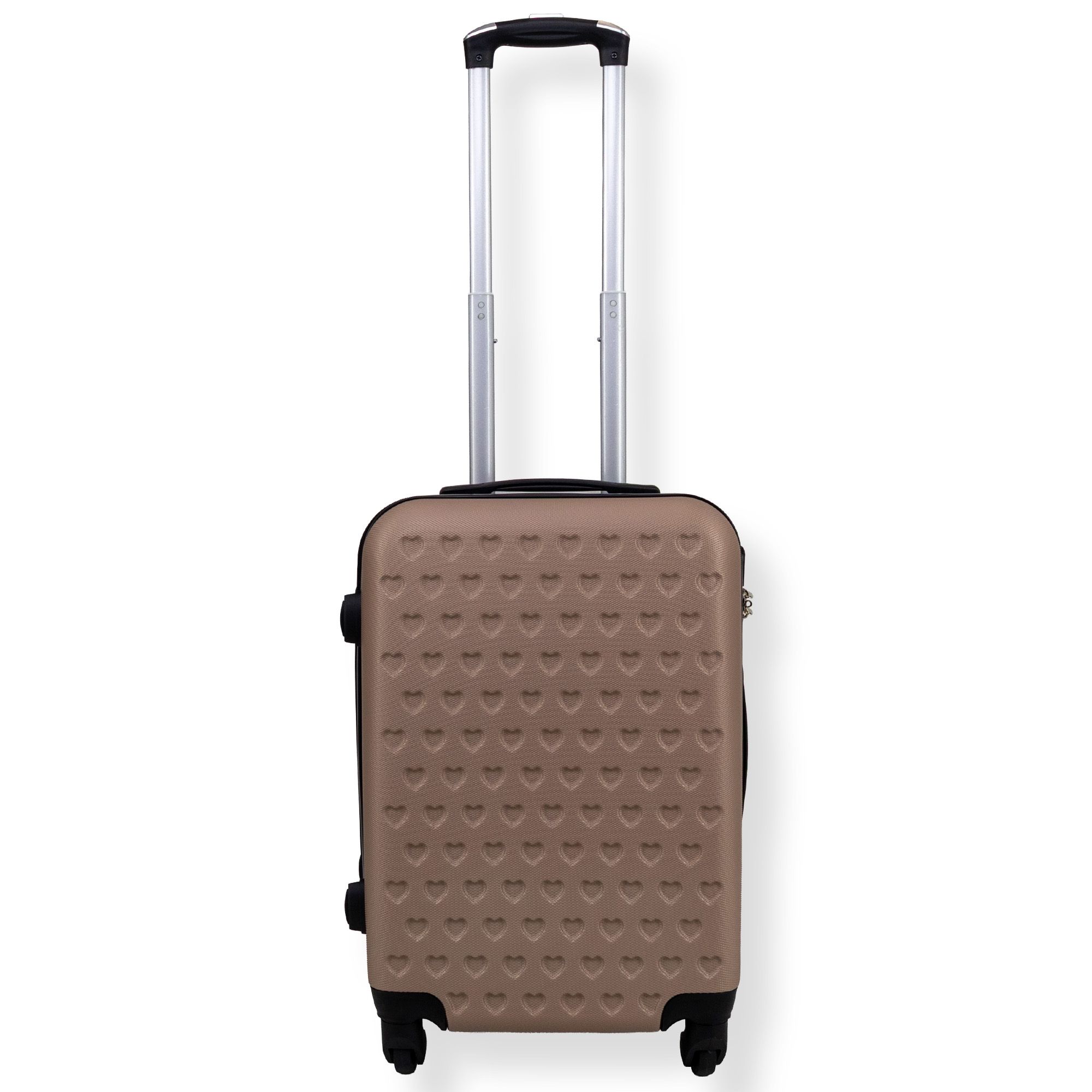 Denne brune kabinekuffert med hjerter er den perfekte rejsemakker til både korte og længere ture. Rejs nemt og sikkert med en kabinekuffert fremstillet i slidstærkt ABS plast. Materialet giver en stærk og holdbar overflade, som er modstandsdygtig overfor de hårde slag og pres, der kan opstå på f.eks. et bagagebånd. Det slidstærke materiale beskytter altså dine ejendele på hele rejsen - samtidig er kufferten let og nem at håndtere.