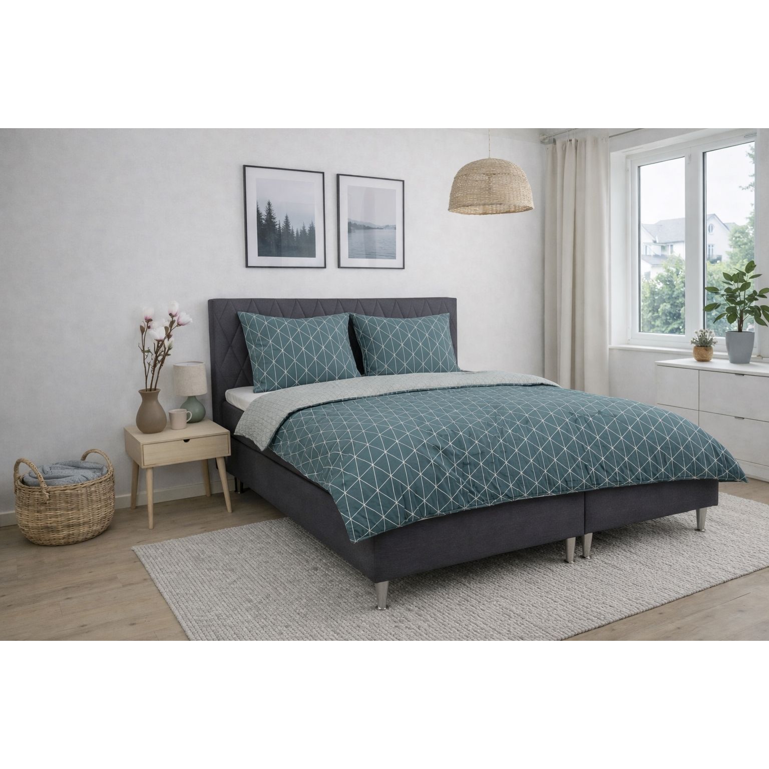 Giv soveværelset et dekorativt og stilfuldt udtryk med dette dobbelt sengesæt i 100% bomuld med vendbart harlequin design. Det vendbare design giver dig to forskellige looks i ét sengesæt. Det gør sengetøjet nemt at kombinere med forskellige farver, puder og plaider og giver større fleksibilitet i indretningen.