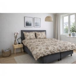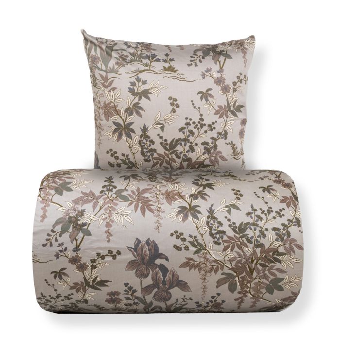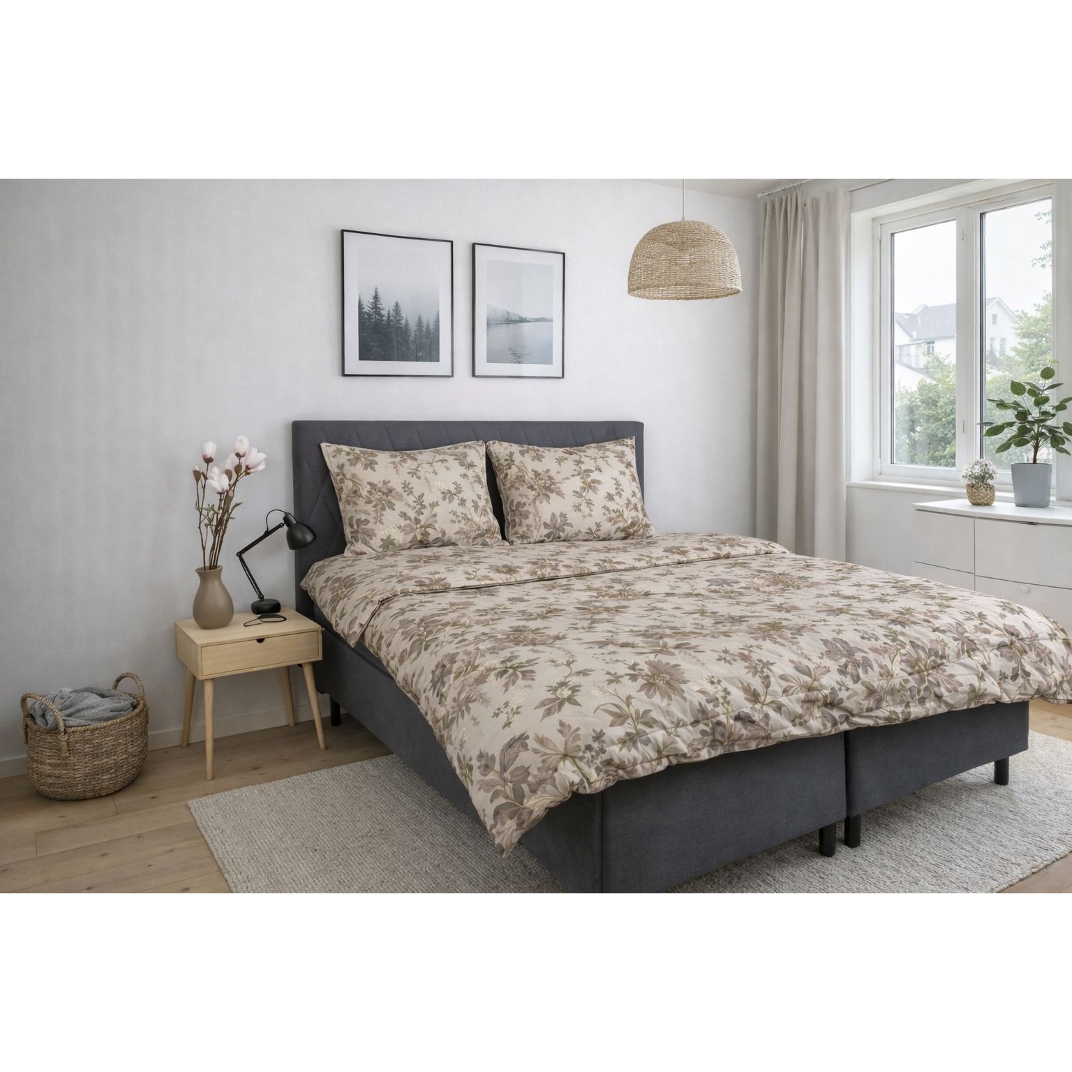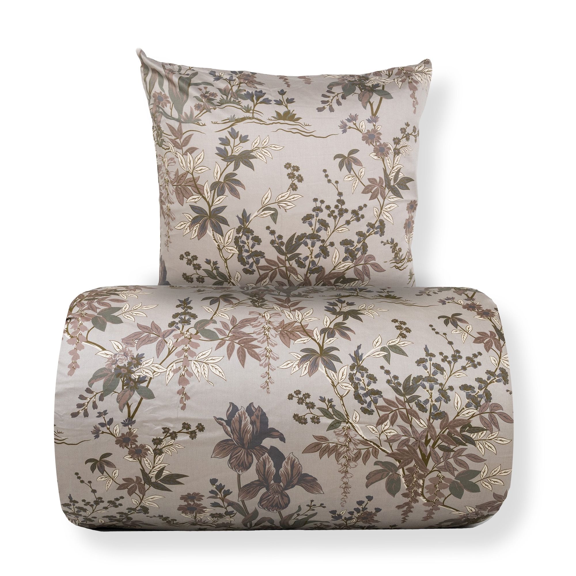 Dobbelt sengetøj 200x200 cm - Bomuldssatin - Wildflower - Brunt blomster print