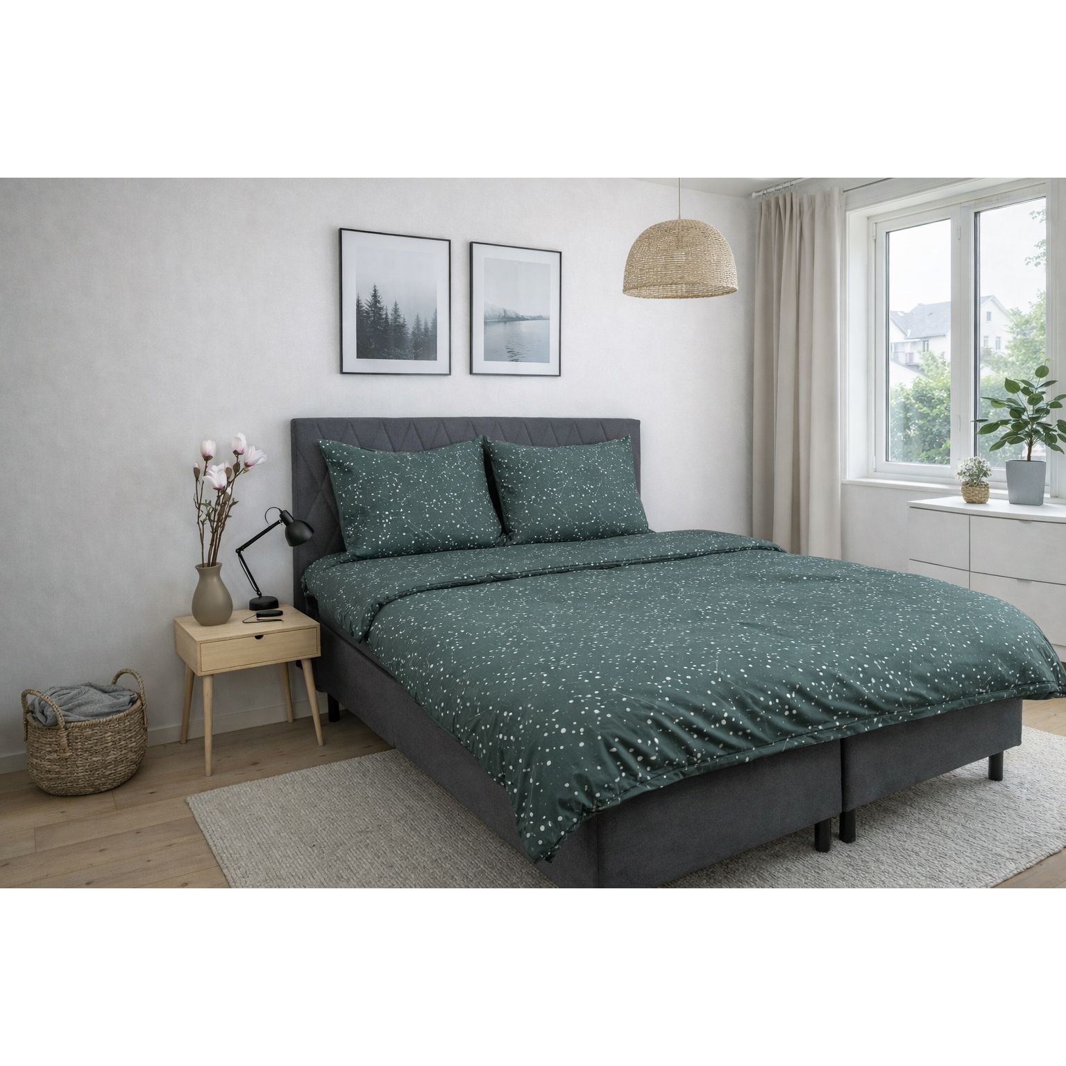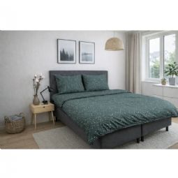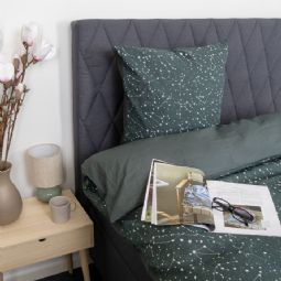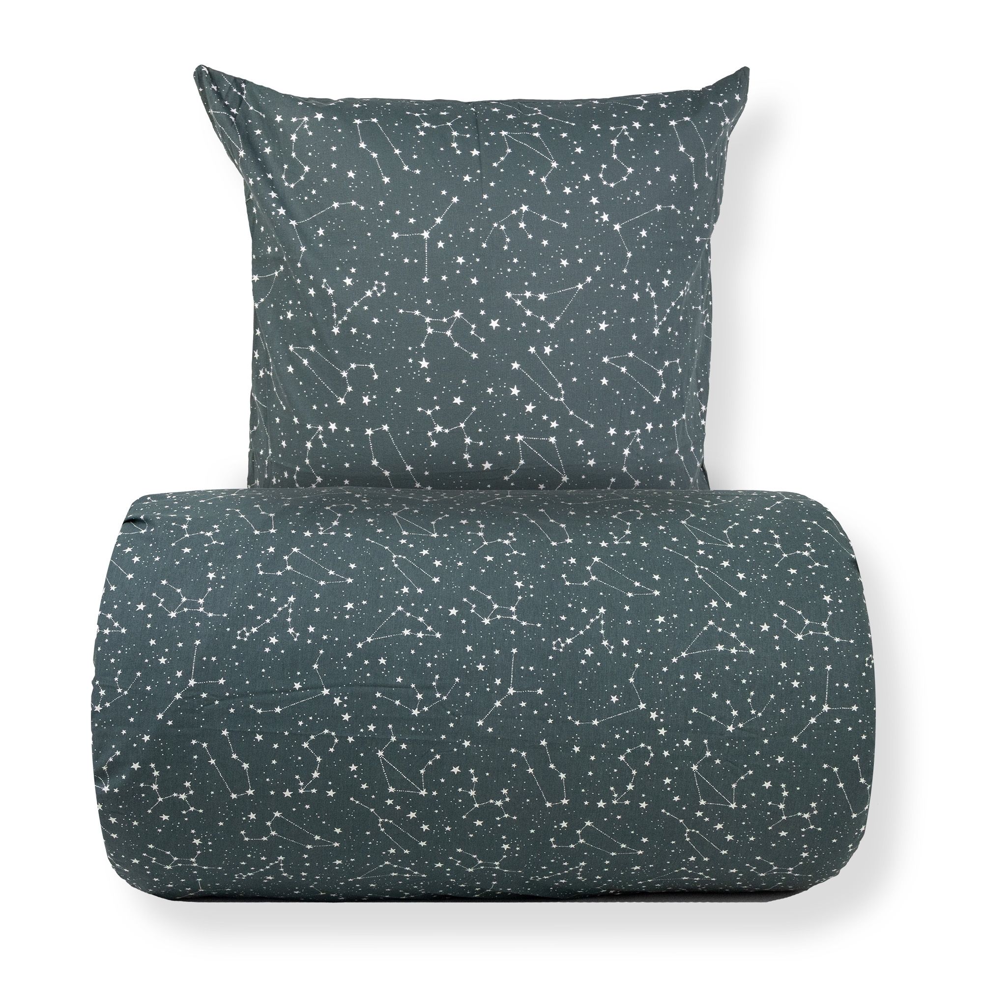 Dobbelt sengetøj 200x220 cm - 100% Bomuld - Zodiac green - Vendbart med stjerner