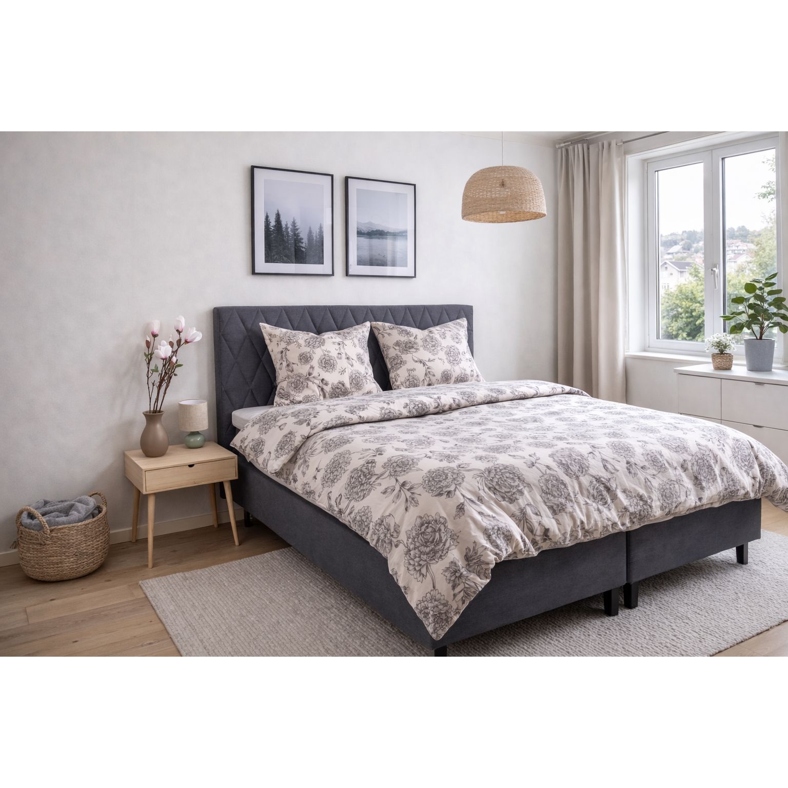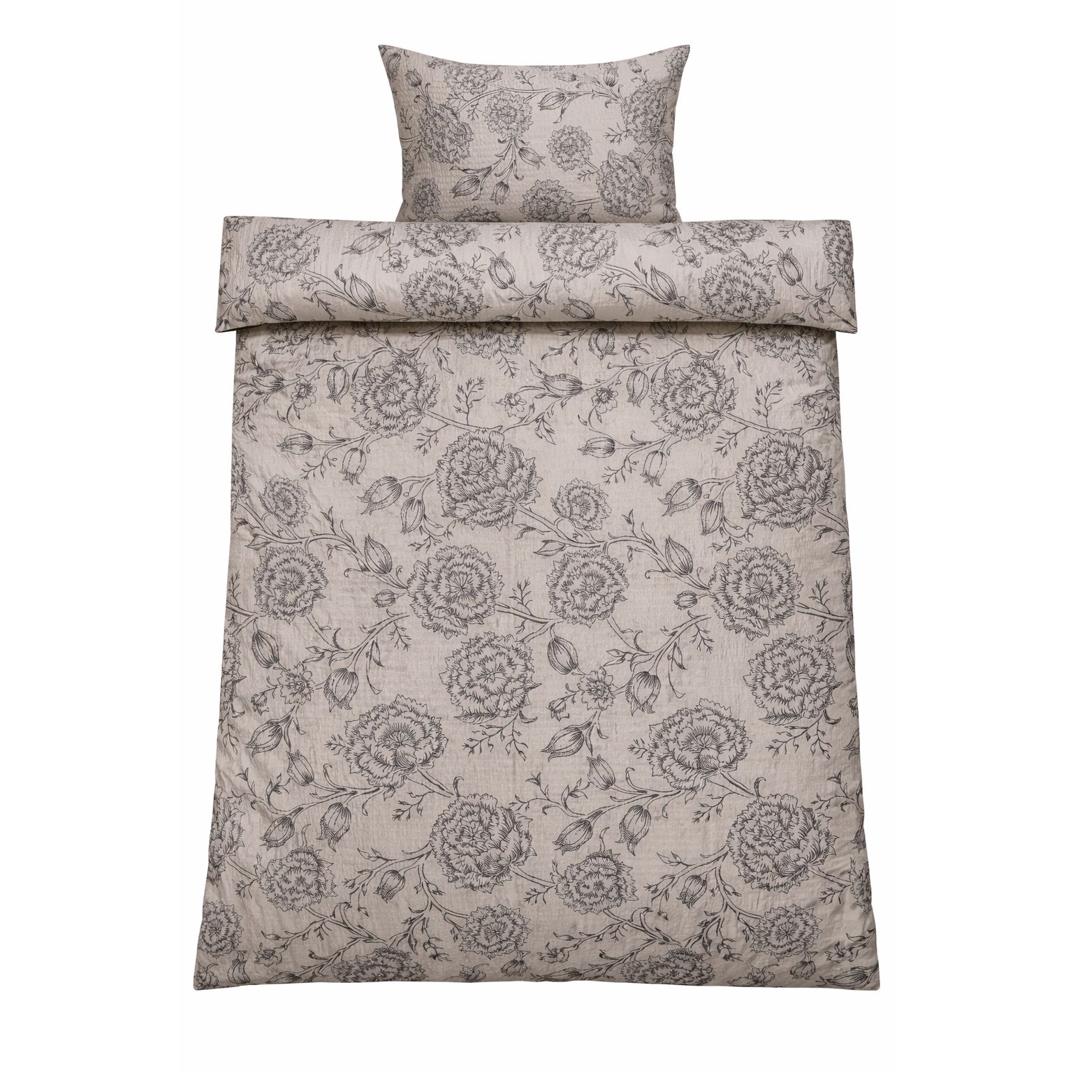 Dyne- og pudebetræk lukkes med lynlås, som gør det nemt at skifte sengetøj og holder både dyne og pude sikkert på plads natten igennem. Det blomstrede design giver et roligt og tidløst udtryk, der passer godt ind i både moderne og klassiske soveværelser.