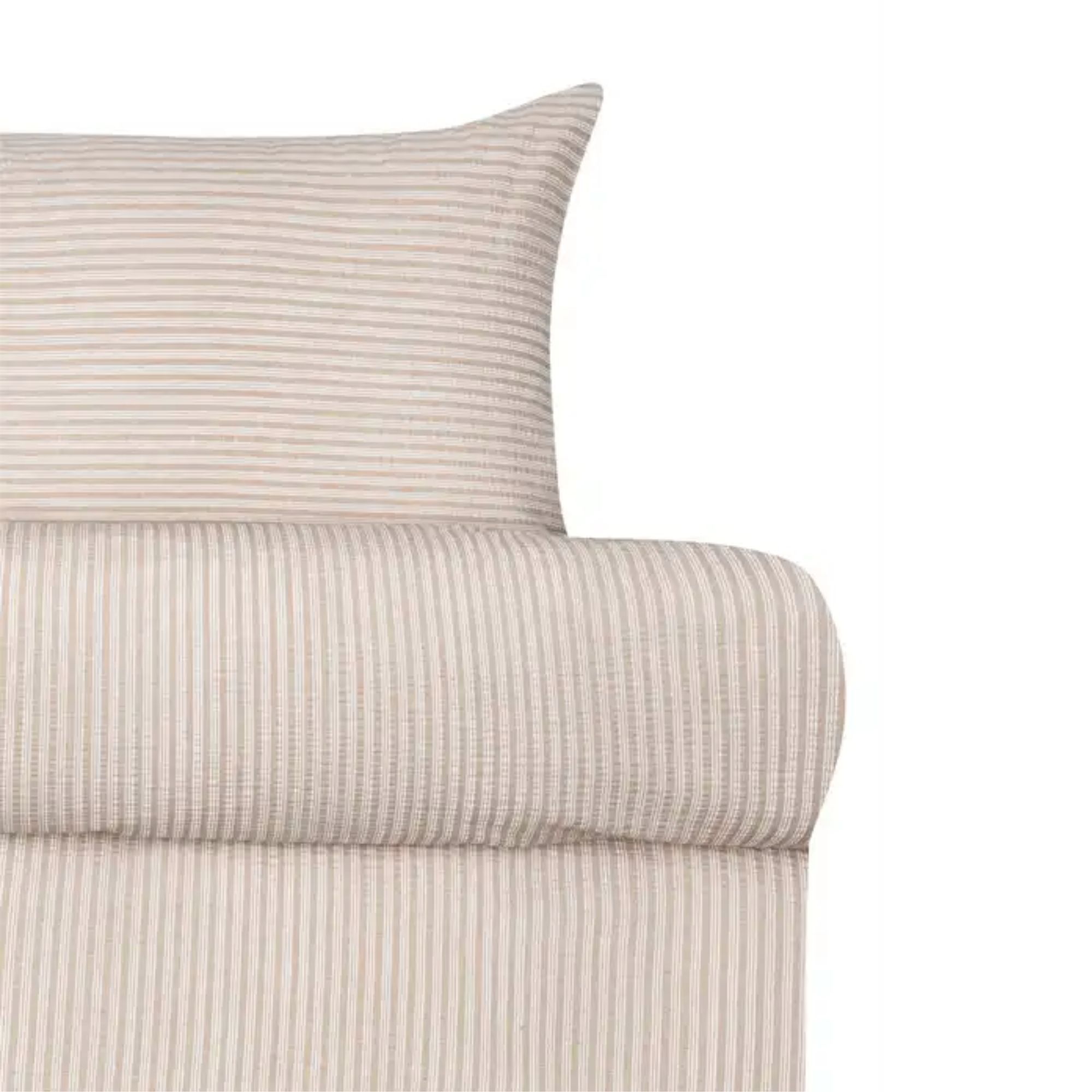 Bæk og bølge vævningen danner små luftlommer i stoffet, hvilket gør sengetøjet ekstra åndbart og let at sove i. Overfladen føles køligere mod huden end traditionelt glat sengetøj og er derfor særligt velegnet til varme nætter eller til dig, der ofte får det varmt, når du sover. Samtidig bevarer bomulden sin naturlige blødhed og evne til at absorbere fugt, så du får en behagelig og tør sovekomfort. Sengetøjet har en trådtæthed på 200TC, som sikrer en god balance mellem holdbarhed, komfort og blødhed. Den vaflede struktur gør, at sengetøjet ikke behøver at blive strøget for at se pænt ud - det karakteristiske udtryk er en naturlig del af designet.