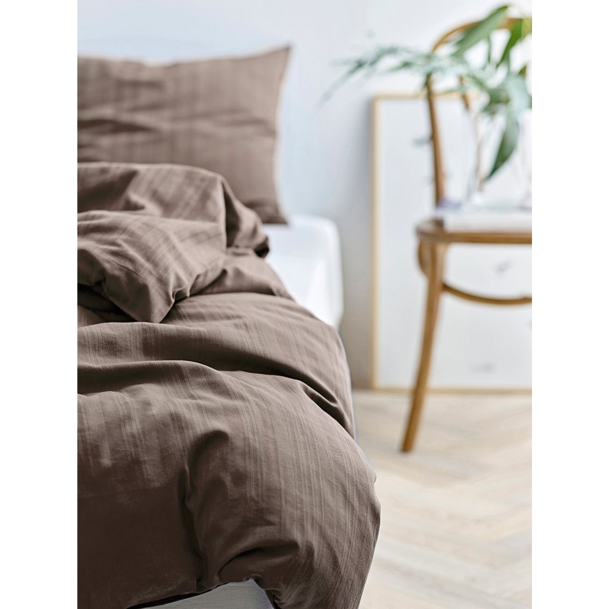 Drømmer du om ægte hotelstemning i soveværelset? Med dette luksuriøse damaskvævede sengetøj fra Södahl får du en kombination af elegant design, god komfort og høj kvalitet. Det stilrene stribede design i en smuk brun farve giver et roligt og eksklusivt udtryk, der passer perfekt ind i det nordisk inspireret hjem.