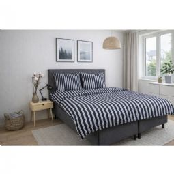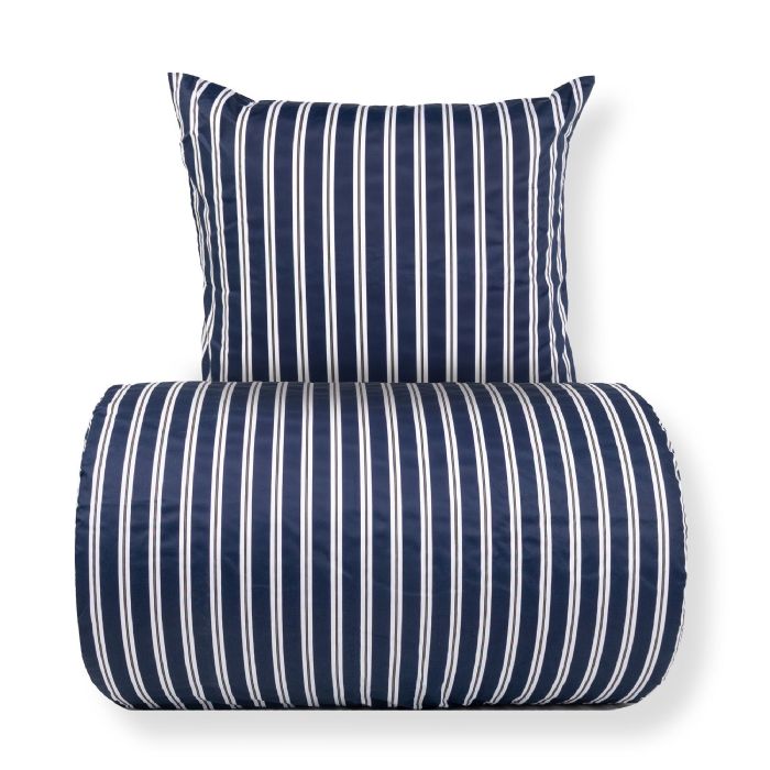 Dobbelt sengetøj 240x220 cm - Bomuldssatin - Blåt stribet print
