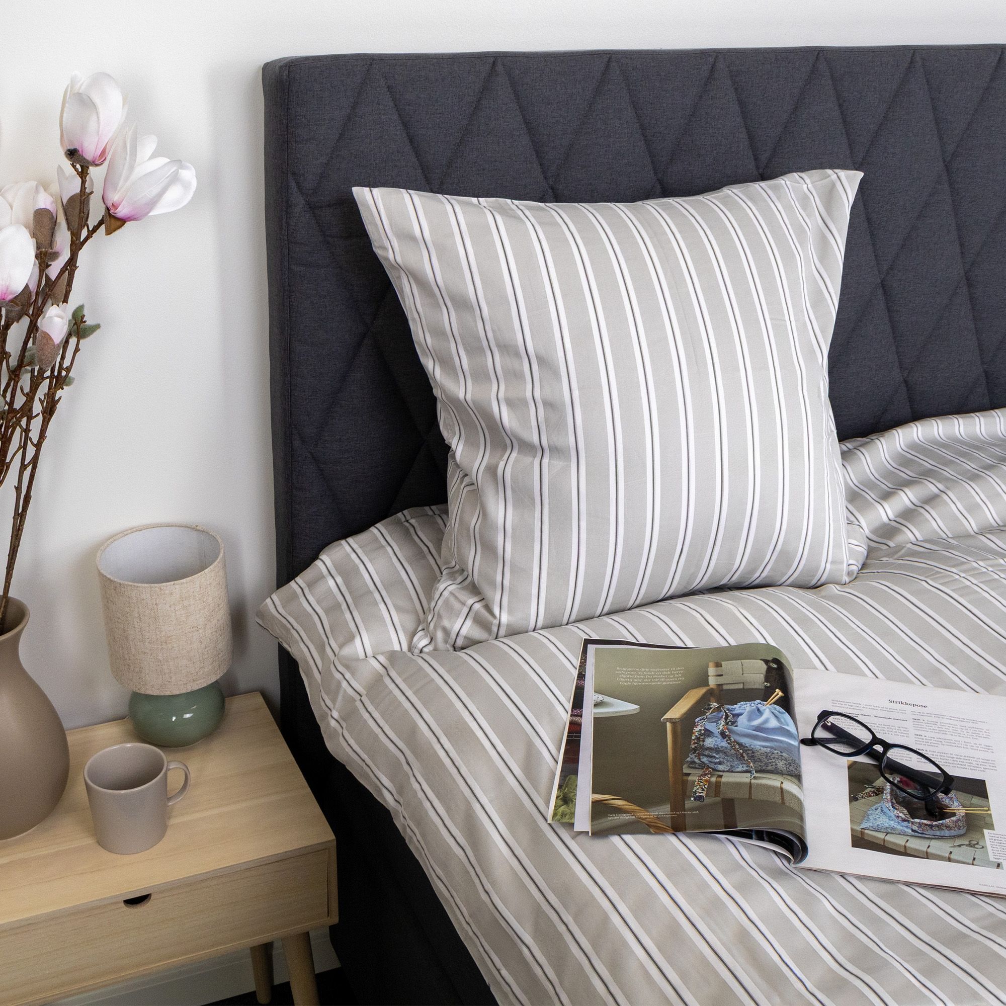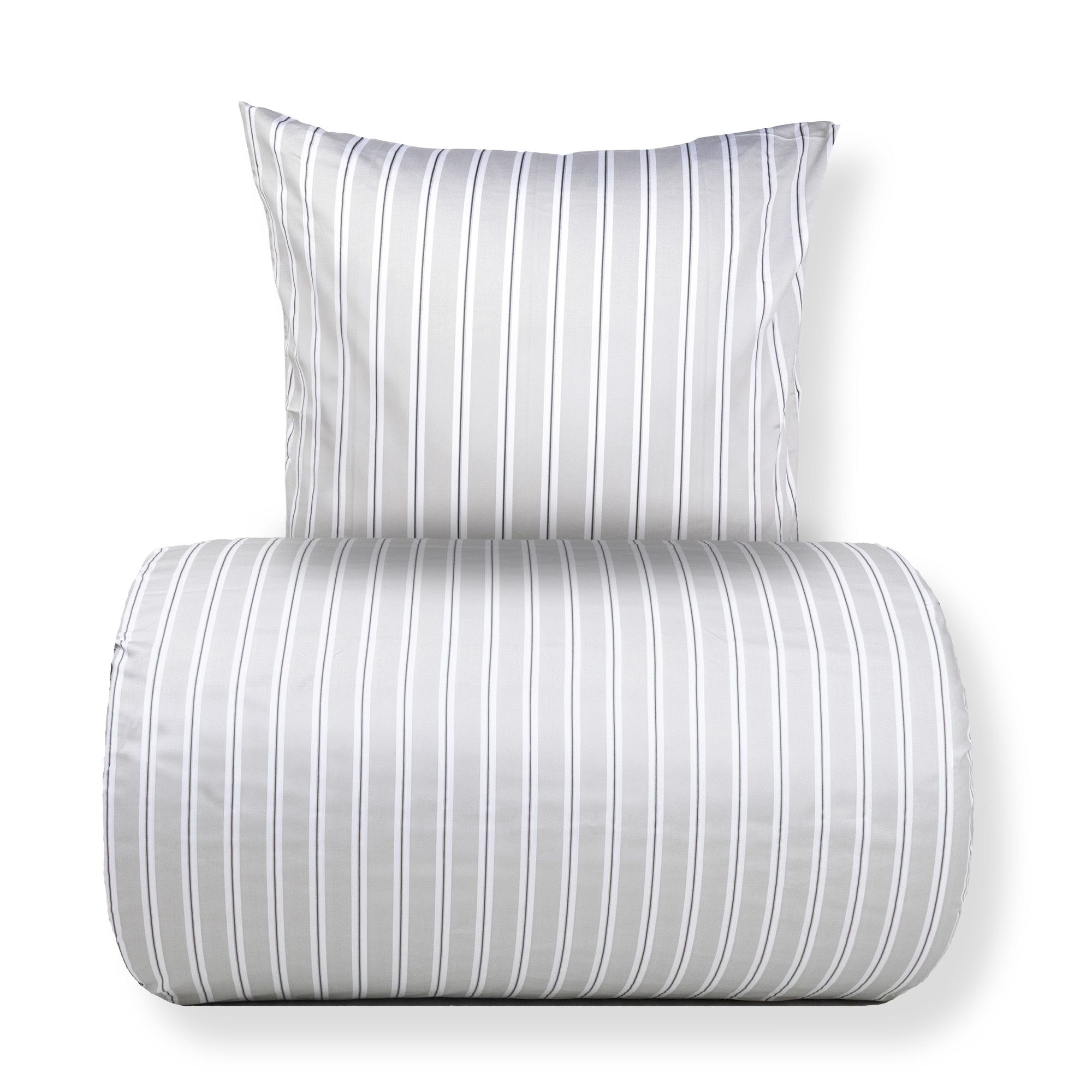 Dobbelt sengetøj 240x220 cm - Bomuldssatin - Gråt stribet print