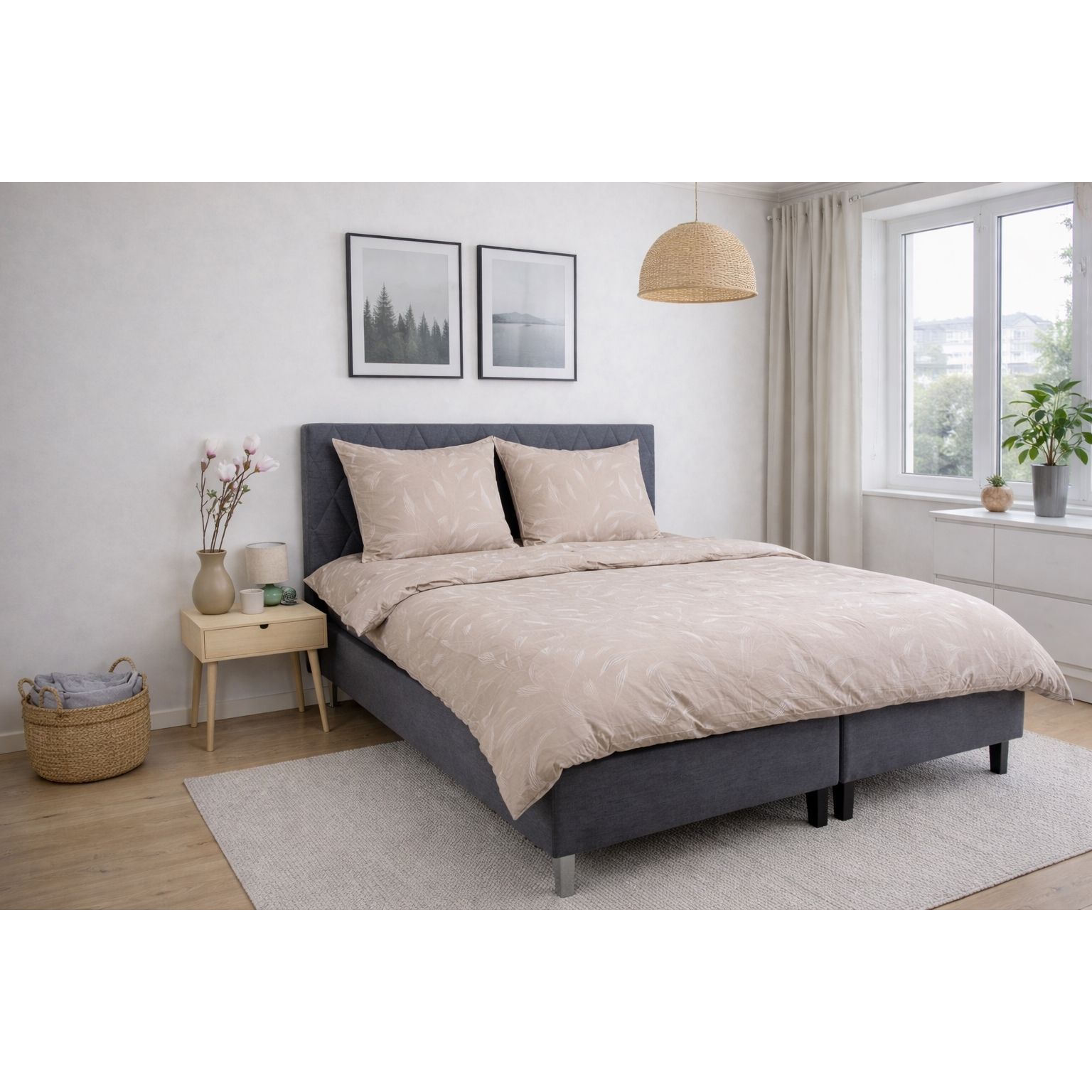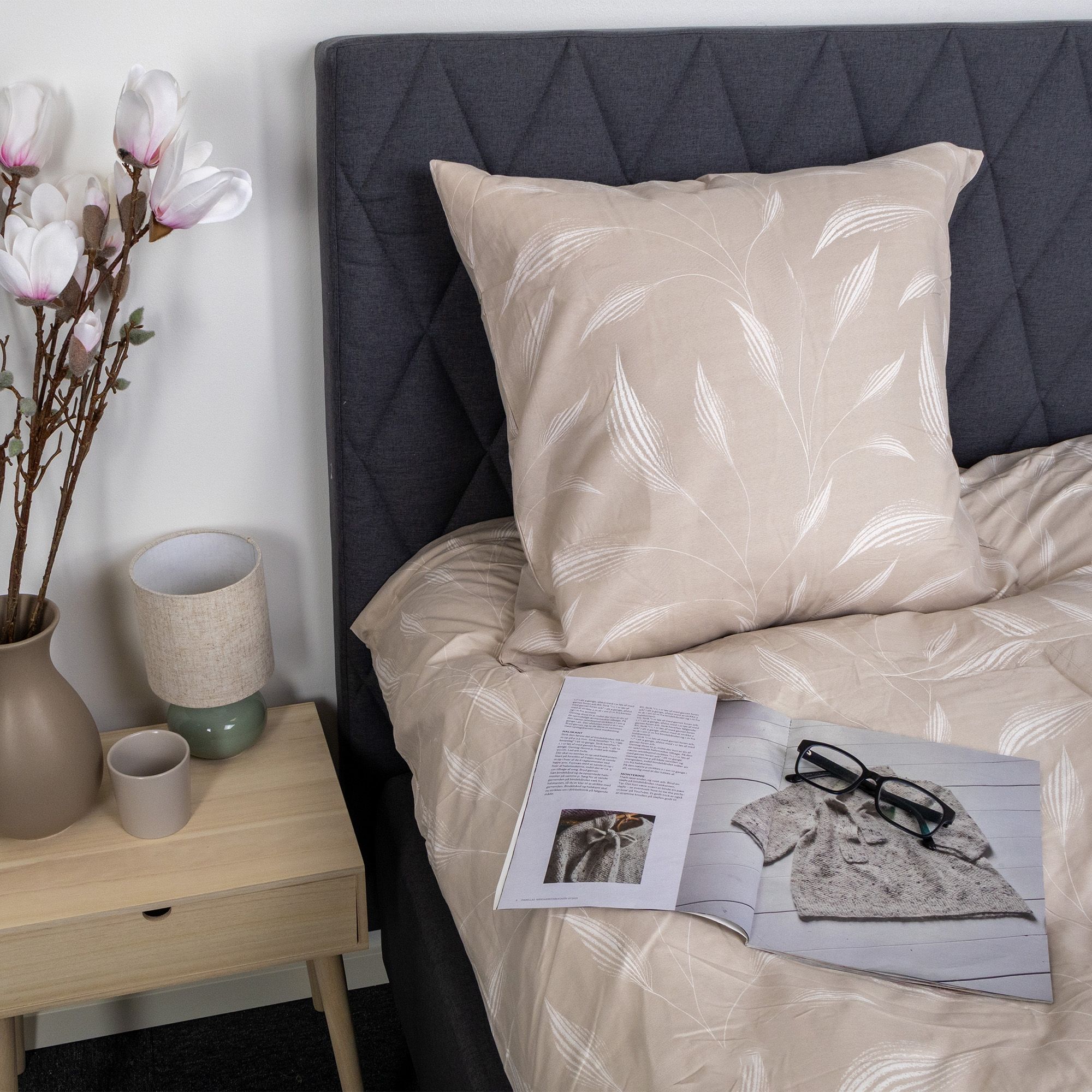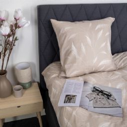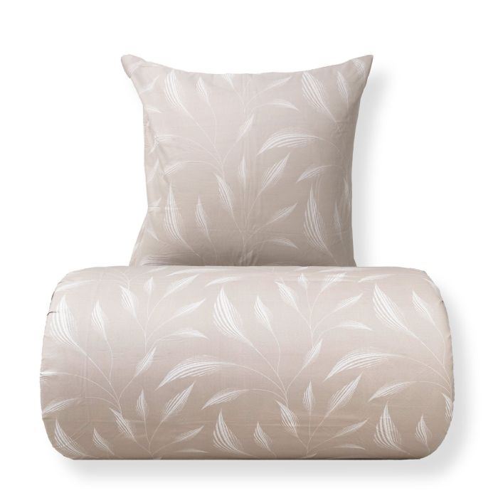 Både dynebetræk og pudebetræk lukkes med lynlås, som sikrer, at dynen og puden bliver på plads, og gør det nemt at skifte sengetøj. Det beige print af blade skaber et roligt og dekorativt udtryk, der passer ind i både moderne og klassiske soveværelser. Det medfølger 2 pudebetræk til dette sengesæt.