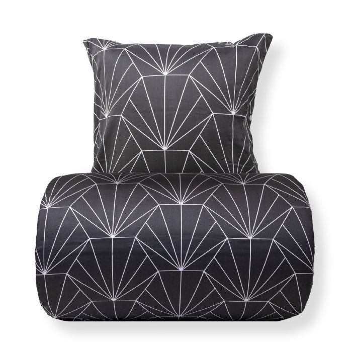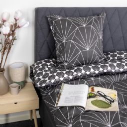 Skab en stemningsfuld og elegant atmosfære i soveværelset med dette smukke dobbelt sengesæt i 100% bomuldssatin. Sengetøjet kombinerer to forskellige hexagonprint, så du nemt kan skifte udtryk i soveværelset ved blot at vende sengetøjet.