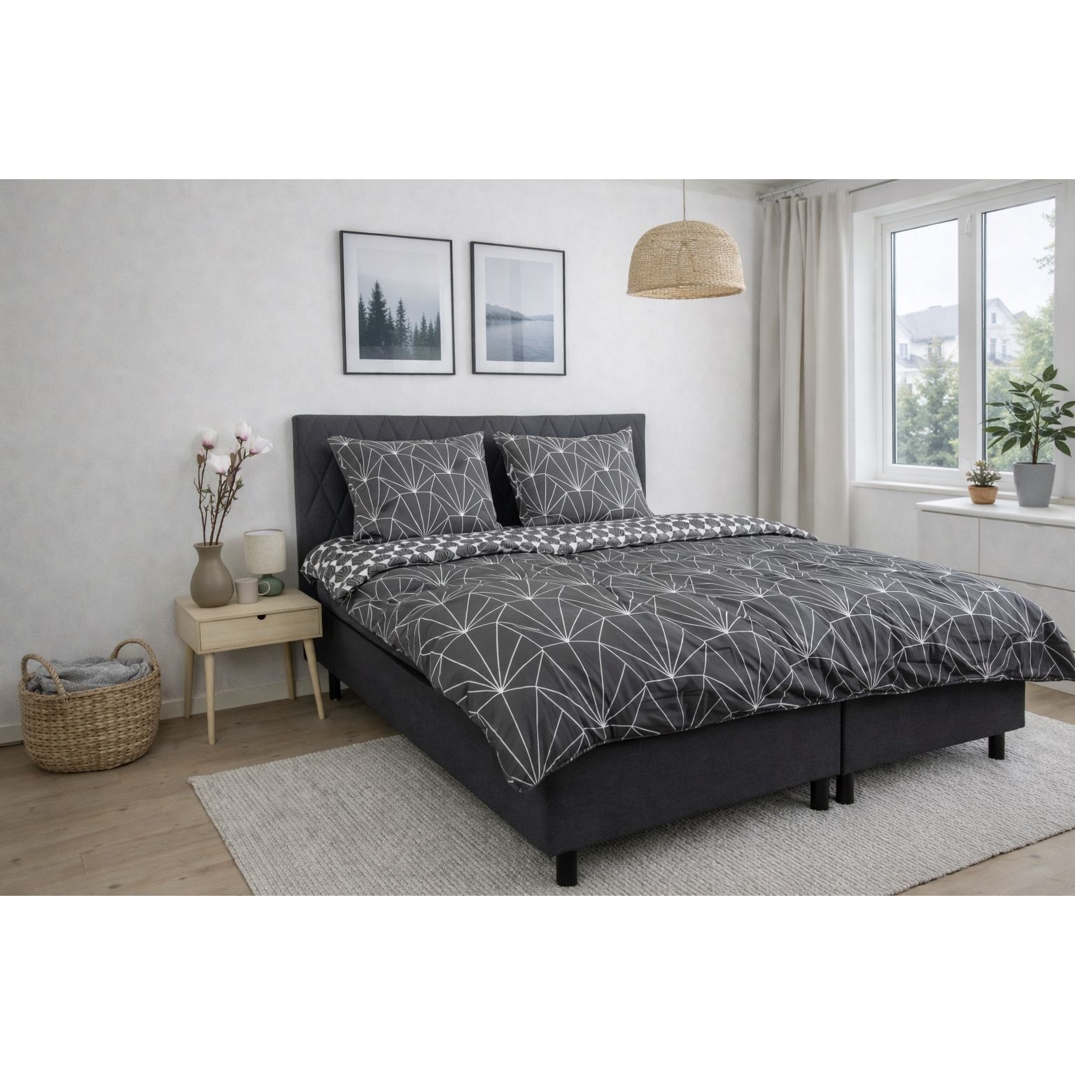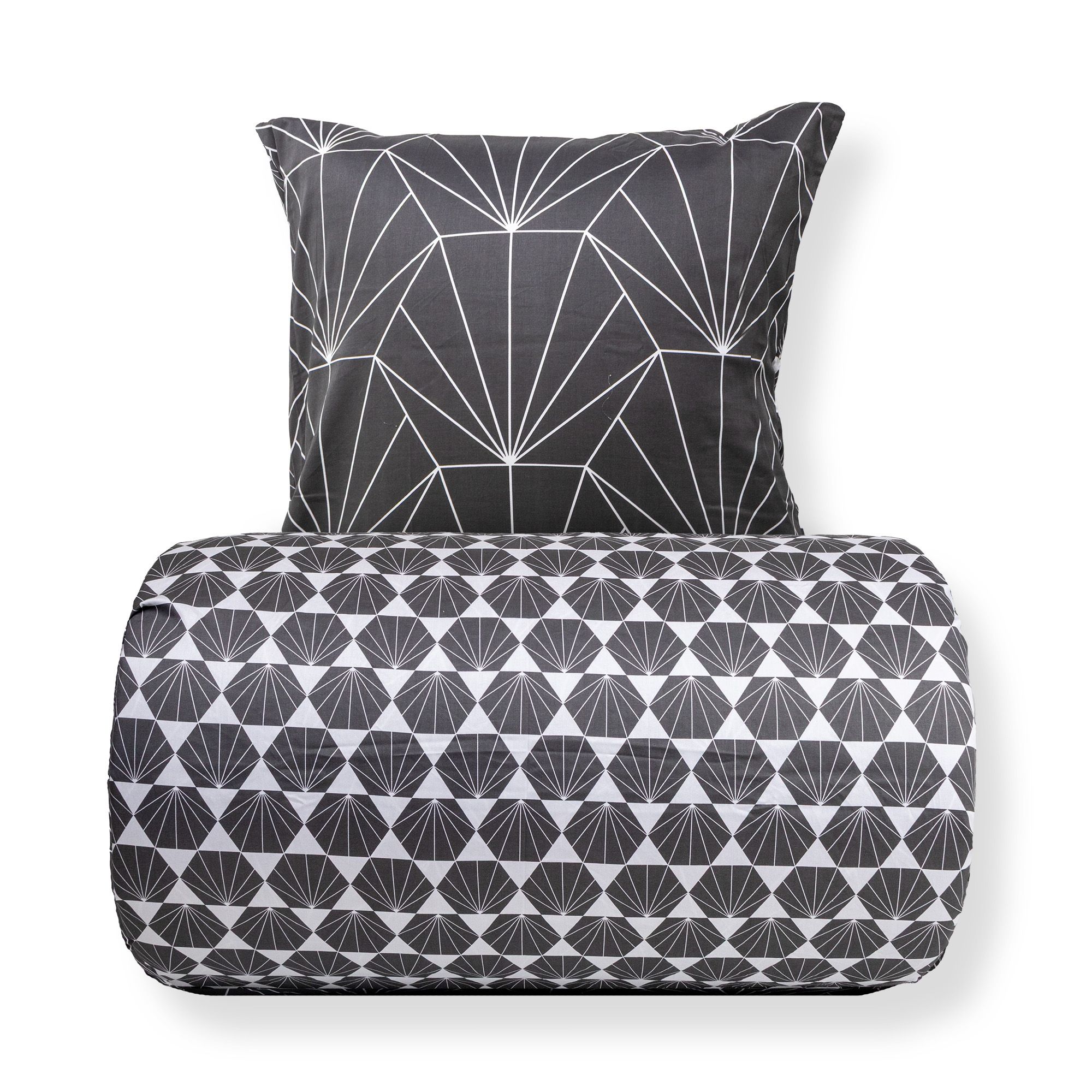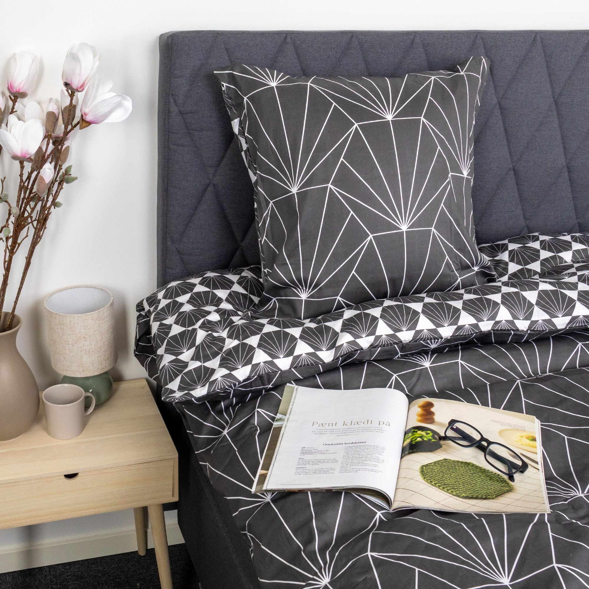 Det vendbare design giver dig to forskellige looks i ét sengesæt. Forsiden er dekoreret med et moderne grafisk mønster, mens bagsiden har et mere afdæmpet geometrisk udtryk. Det gør sengetøjet nemt at kombinere med forskellige farver, puder og plaider og giver større fleksibilitet i indretningen.