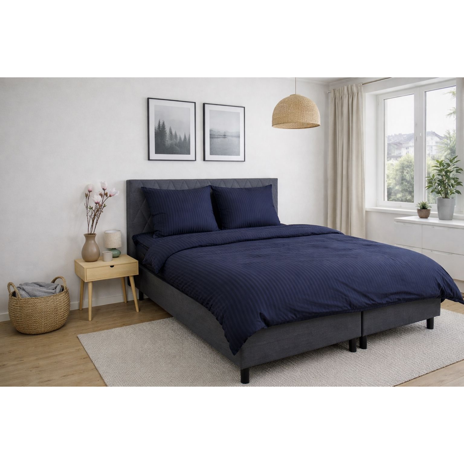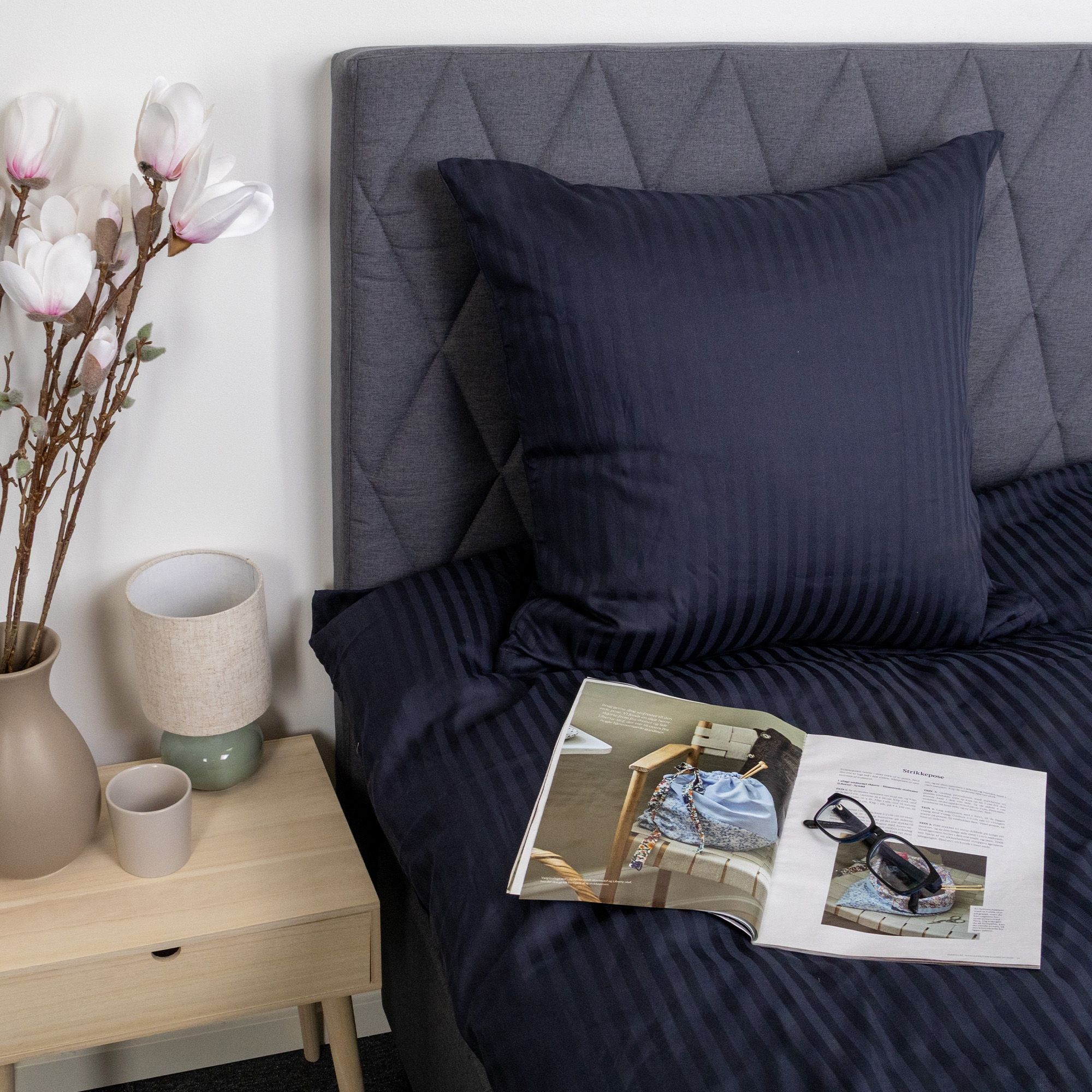 Skab et elegant og eksklusivt udtryk i soveværelset med dette mørkeblå stribet sengetøj i 100% bomuldssatin. Sengetøjet kombinerer klassisk design med høj komfort og er skabt til dig, der ønsker både luksus og funktionalitet i hverdagen.