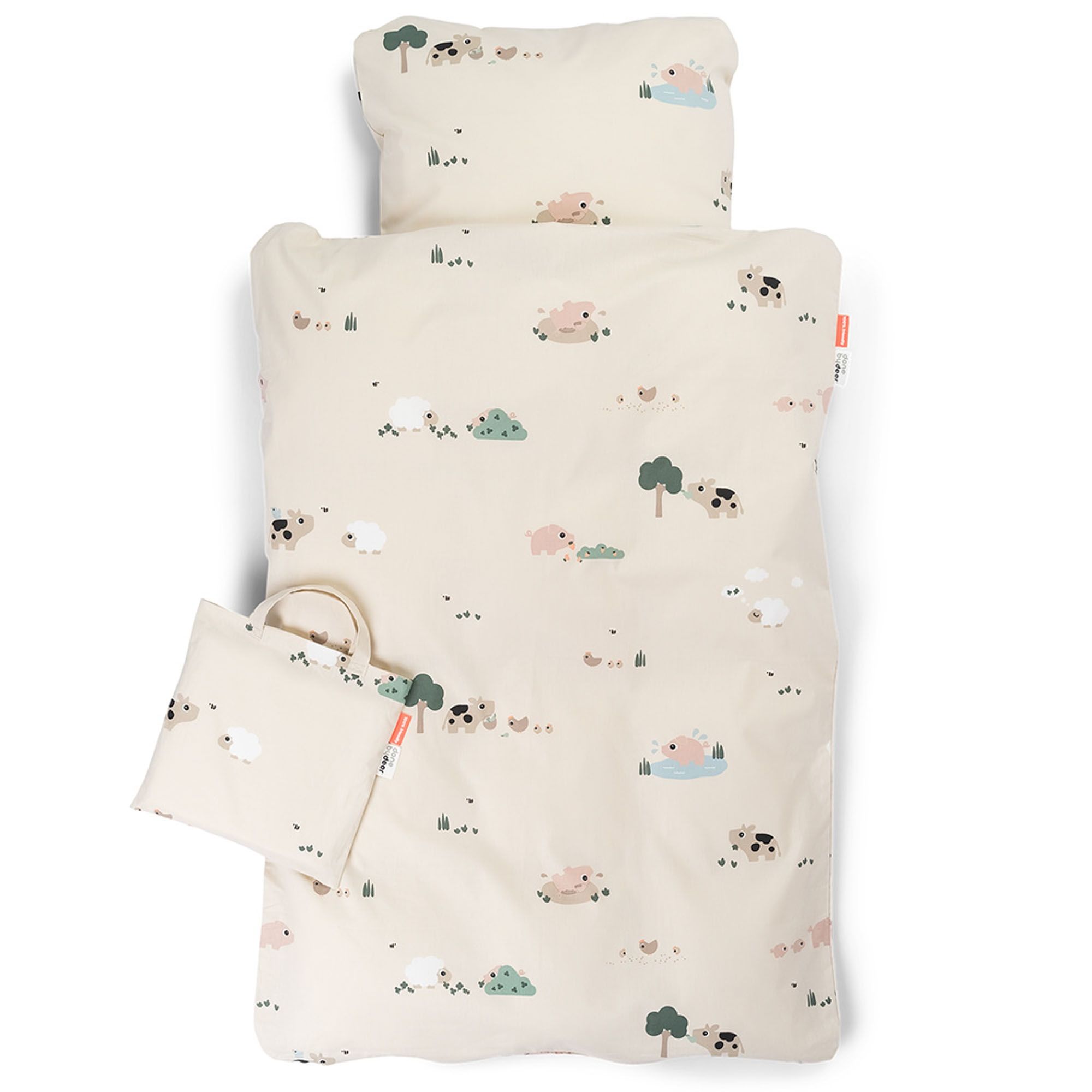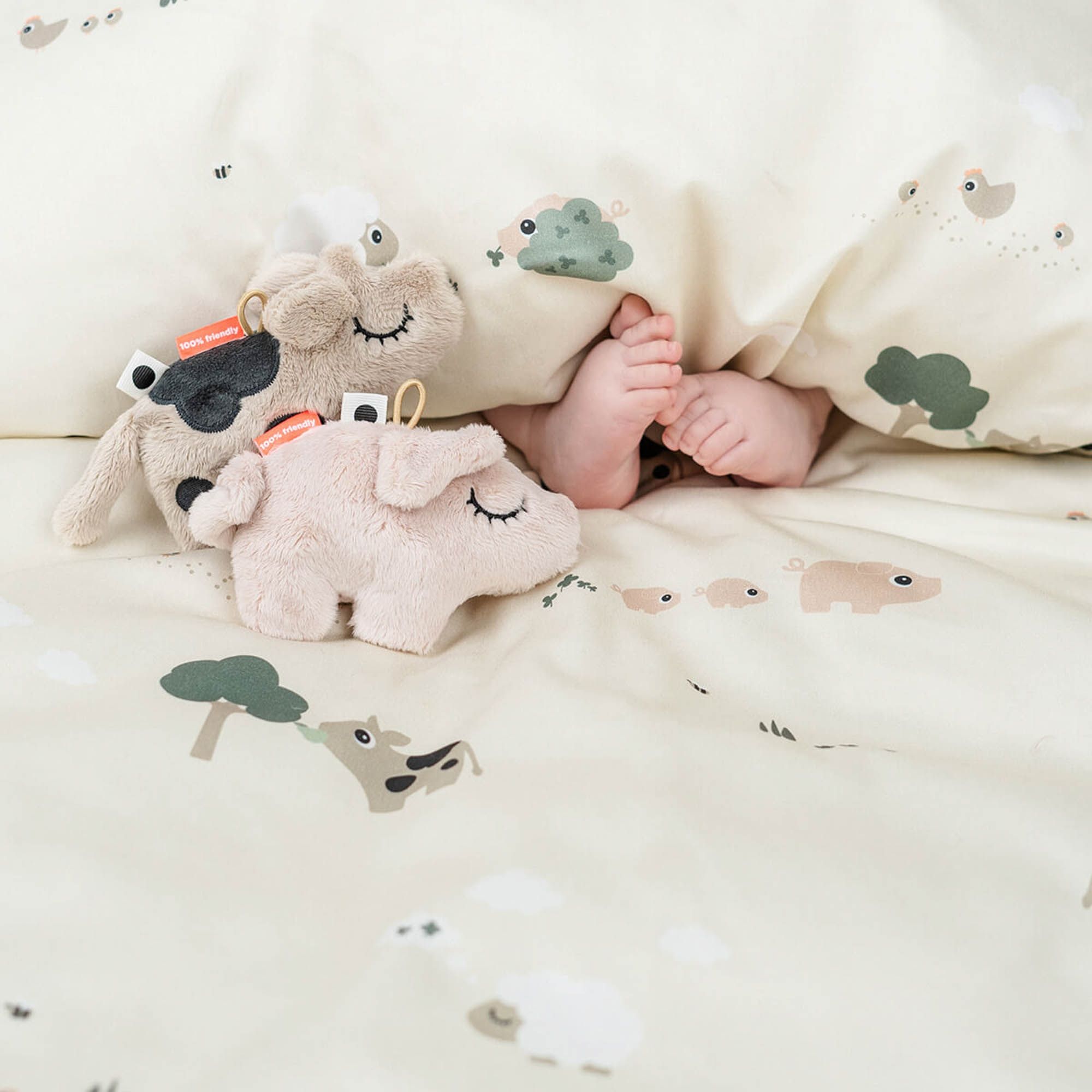 Det fine design i sandfarve med de søde bondegårdsdyr - Dotti, Pigee og Sheepy, skaber en rolig og hyggelig atmosfære i babyens omgivelser. De søde motiver giver et trygt og kærligt udtryk, som gør puttetid endnu mere hyggelig.