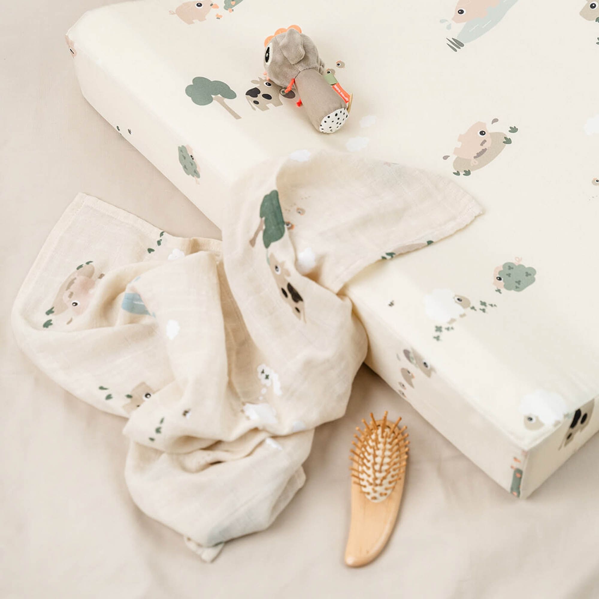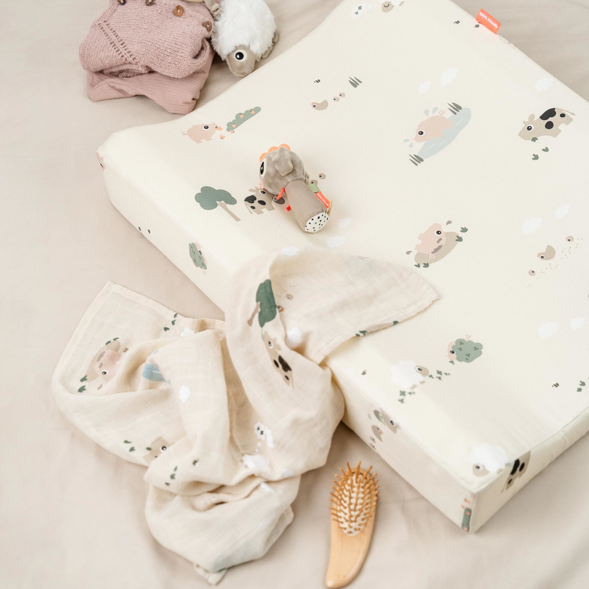 Gør pusletiden både tryg og behagelig med denne praktiske puslepude fra Done by Deer i det fine Tiny Farm design. Puslepuden måler 65x50 cm og er designet med fokus på både komfort, sikkerhed og funktionalitet.