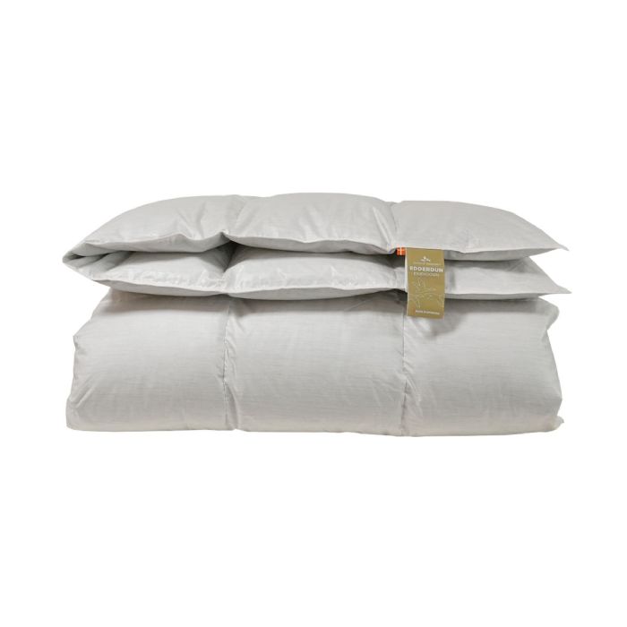 Denne luksus dyne består af 100% håndindsamlet islandske edderdun, den fineste, bedste og mest eksklusive duntype. Dunene bliver samlet direkte fra fuglens reder, så snart den efterlades af ungerne. De kostbare små dun har en unik isoleringsevne som når langt over andre almindelige dun, og så er de så lette - at de føles som varm luft. Edderdun er den dun type der har den højeste bæreevne/CUIN på 16/1100 - jo højere bæreevne, desto finere dun er der brugt. Edderdun er de fineste der findes, på verdensplan. Dette gør også de eksklusive dun til det letteste og varmeste materiale i hele verden. Edderdun griber, modsat andre duntyper, fast i hinanden så de ikke skilles ad, hvilket skaber deres utrolige isoleringsevne, samtidig med at de giver den letteste, mest luftige og fyldige dyne.