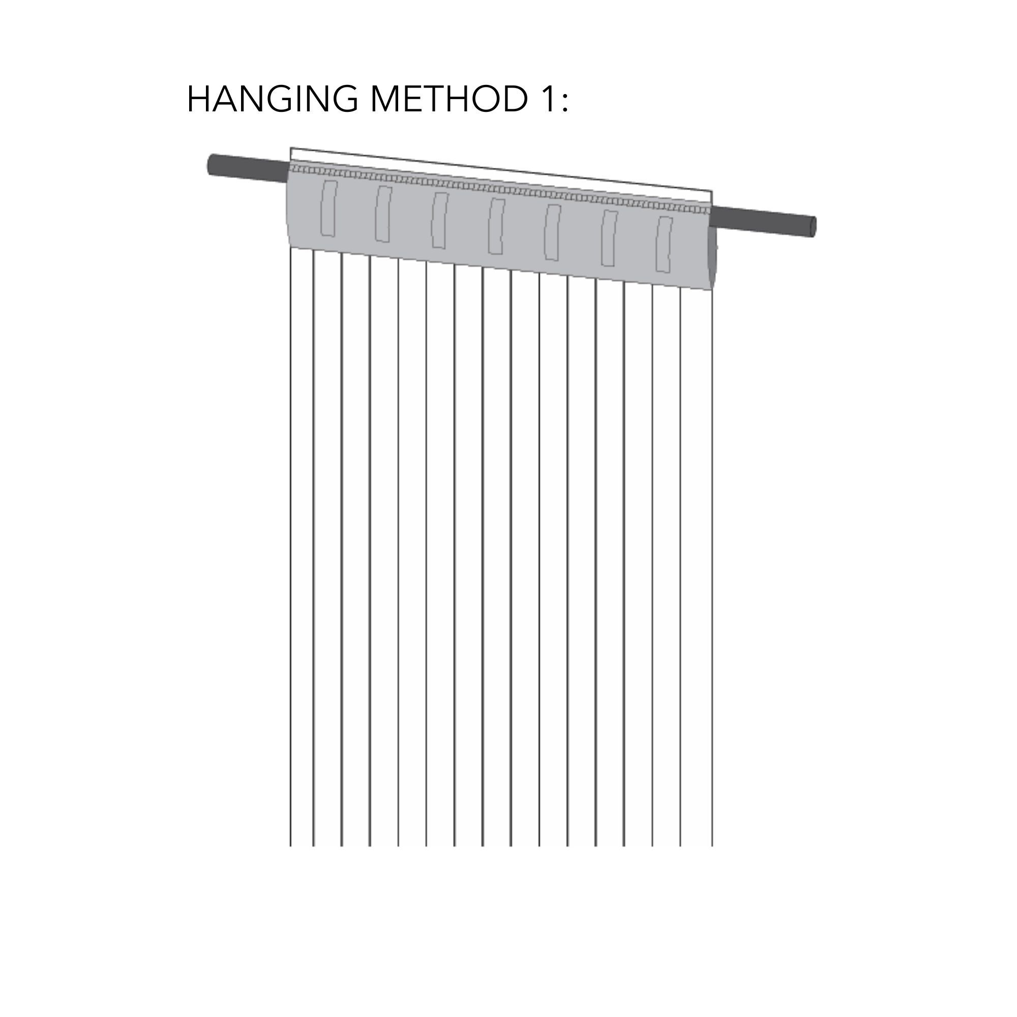 Ophængningsmuligheder: 3 stk. - 50 mm løbegang + gardinhægter + stropbånd