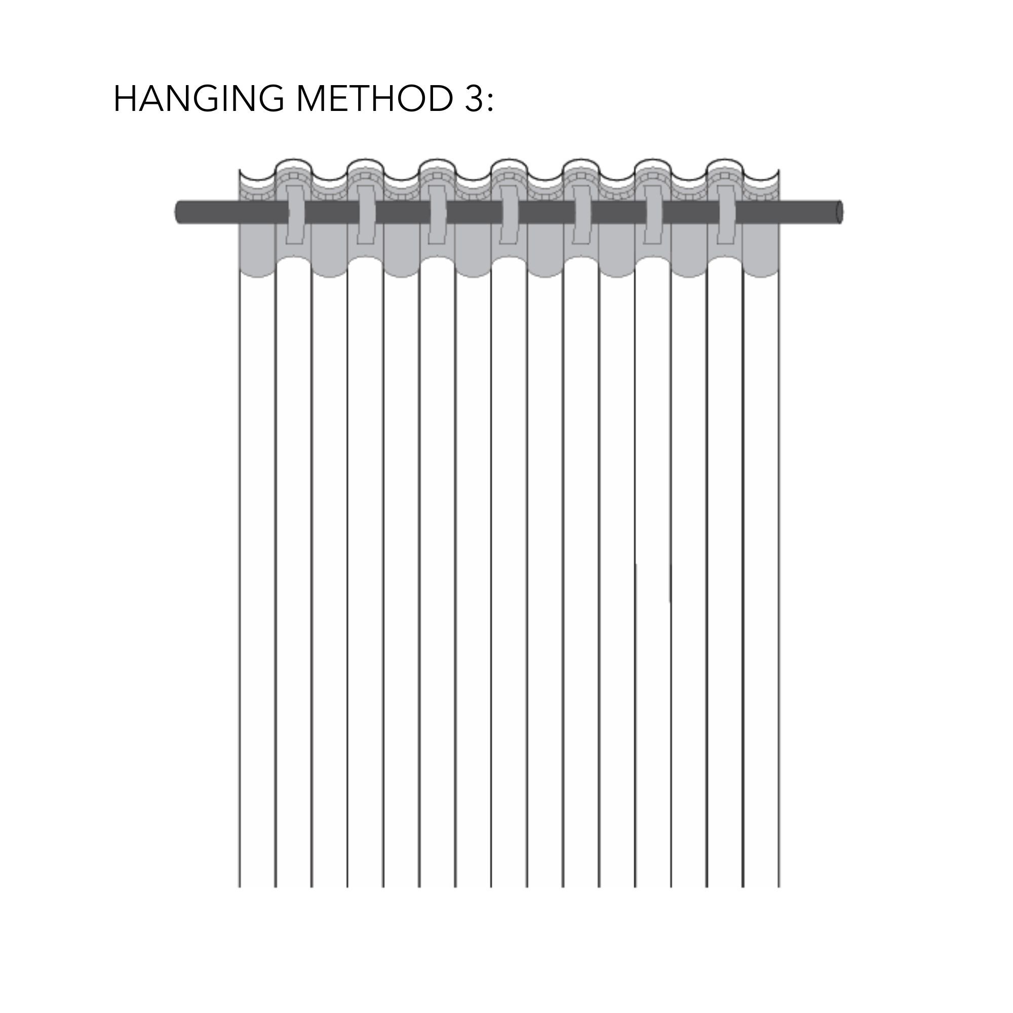 Gardinet har minimum 3 ophængningsmuligheder. Det er også de mest gængse monteringer af gardiner.