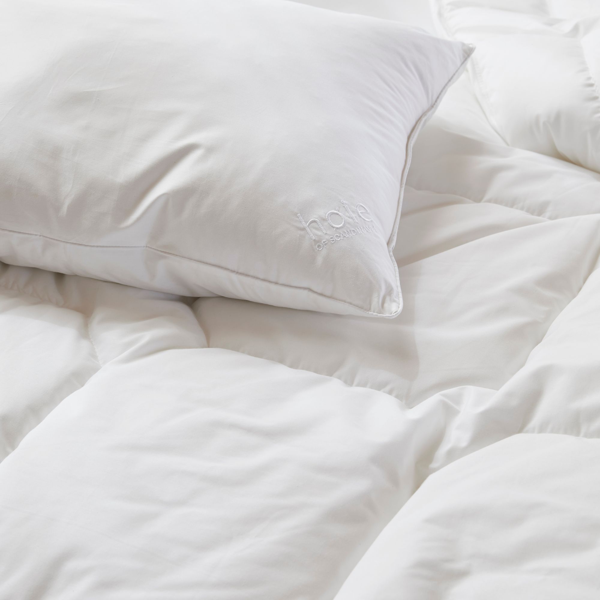 Allergo® er en allergivenlig serie i flere pudehøjder og varmegrader, så du nemt kan finde den pude og dyne, der passer perfekt til dig.