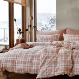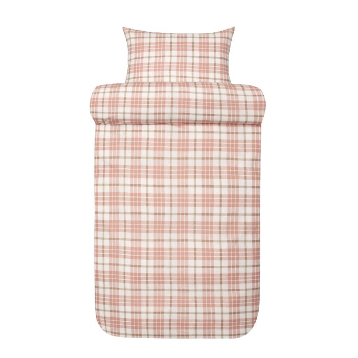 Flonel sengetøj 140x200 cm - Lyserødt ternet sengesæt - 100% bomulds flonel - Lukas Høie of Scandinavia sengelinned