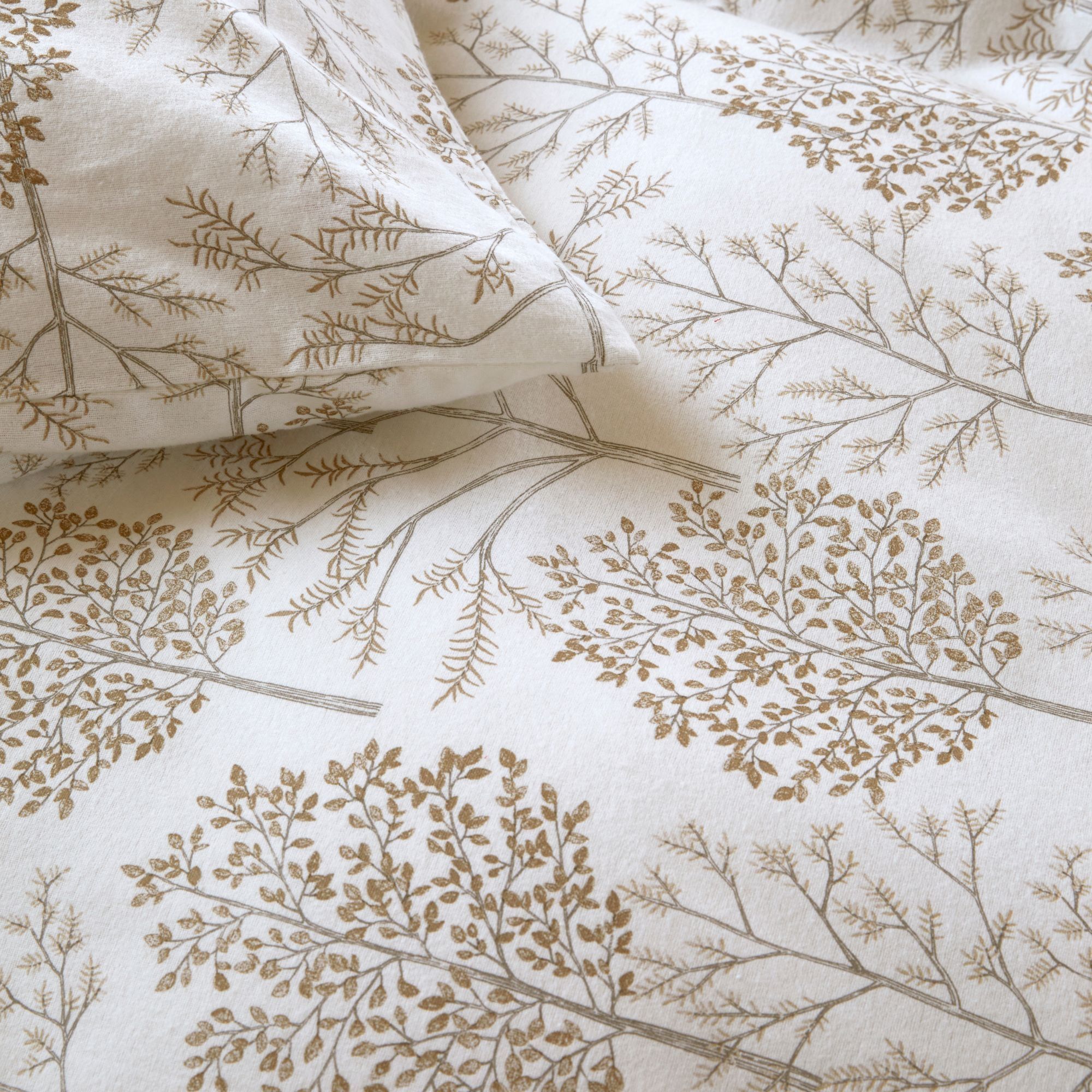 Flonel sengetøj 140x200 cm - Hvidt sengesæt med brune træer - 100% bomulds flonel - Thea Høie of Scandinavia sengelinned