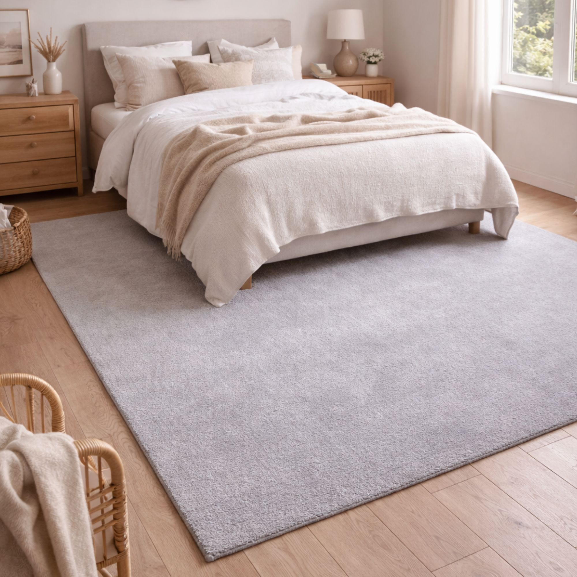 Giv dit hjem et stilrent løft med dette bløde grå gulvtæppe i Loft washable kvalitet. Tæppet er fremstillet i slidstærk polyester giver en lækker, blød overflade at træde ned i. Den elegante grå farve gør det nemt at integrere i både moderne, og minimalistiske indretninger. Det vaskbare gulvtæppe er designet til en travl hverdag, hvor funktionalitet og komfort går hånd i hånd. Et gråt gulvtæppe er et sikkert valg, hvis du ønsker et roligt udtryk i rummet. Det fungerer perfekt i stuen under sofabordet, i soveværelset ved siden af sengen eller på hjemmekontoret, hvor det skaber varme og forbedrer akustikken.
