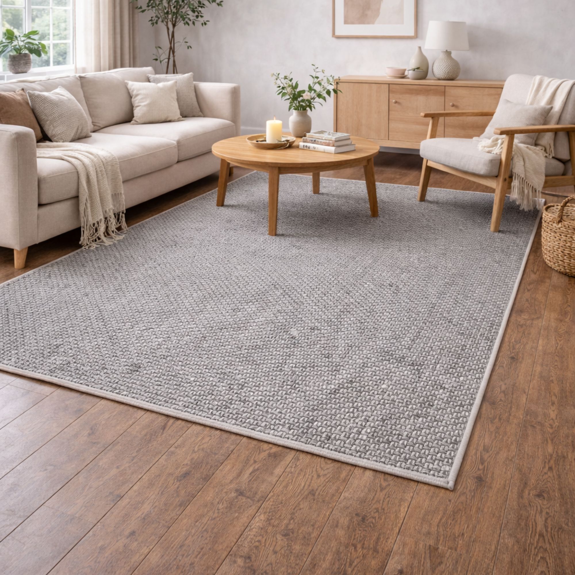 Elegant beige gulvtæppe som er det perfekte valg, hvis du ønsker et tidløst design, som skaber lidt ekstra stil i hjemmet. Den fine struktur og den lyse, naturlige farve giver rummet et mere harmonisk udtryk, som passer ind i i et hvilket som helst hjem. Tæppet er ideelt i stuen under sofabordet, i soveværelset eller som et blødt og indbydende element i entréen. Gulvtæppet er lavet i et slidstærkt og praktisk materiale. Det gør tæppet modstandsdygtigt over for daglig brug og velegnet til rum med aktivitet. Det sørger også for, at gulvtæppet står bedre fast. Du får et gulvtæppe, der både er funktionelt og flot i mange år. Med et Helsinki gulvtæppe kombineres komfort, holdbarhed og nordisk design i én løsning – et sikkert valg, hvis du ønsker et gulvtæppe, der både er praktisk og æstetisk tiltalende. Du kan finde det flotte gulvtæppe i flere forskellige størrelser og farver alt efter, hvad der bedst passer ind i dit hjem. Alle tæpperne er certificeret med STANDARD 100 by OEKO-TEX®, hvilket betyder, at gulvtæppet er testet for skadelige stoffer. Din tryghed for et produkt uden sundhedsskadelig kemi – og et sundere indeklima i hjemmet.