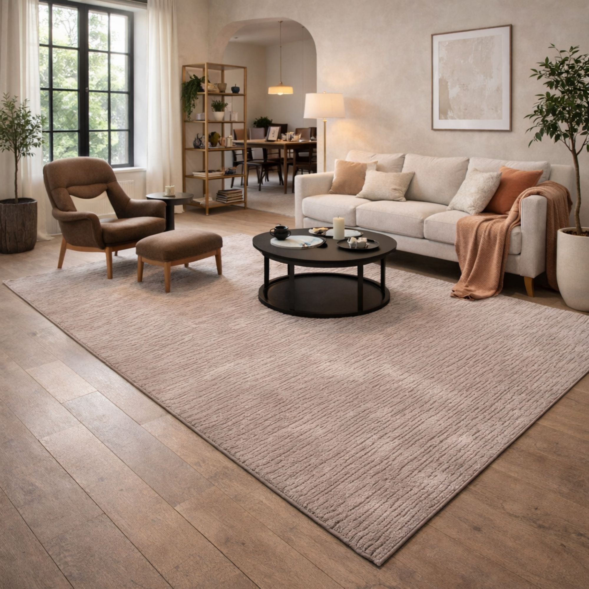 Sign er et eksklusivt beige gulvtæppe, der kombinerer komfort, holdbarhed og et stilrent udtryk. Det bløde polyester giver en behagelig overflade, der føles rar under fødderne. Derfor er tæppet ideelt til både stue, soveværelse og andre opholdsrum, hvor du ønsker en varm og indbydende atmosfære. Den neutrale beige farve gør det nemt at kombinere med forskellige indretningsstile.