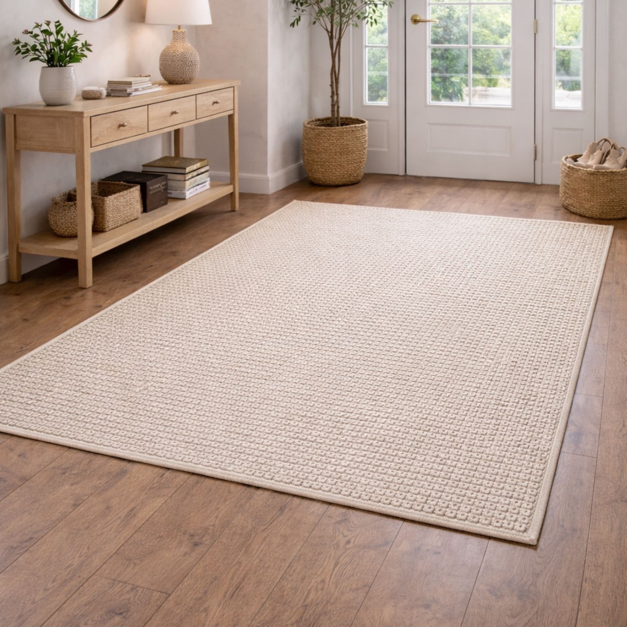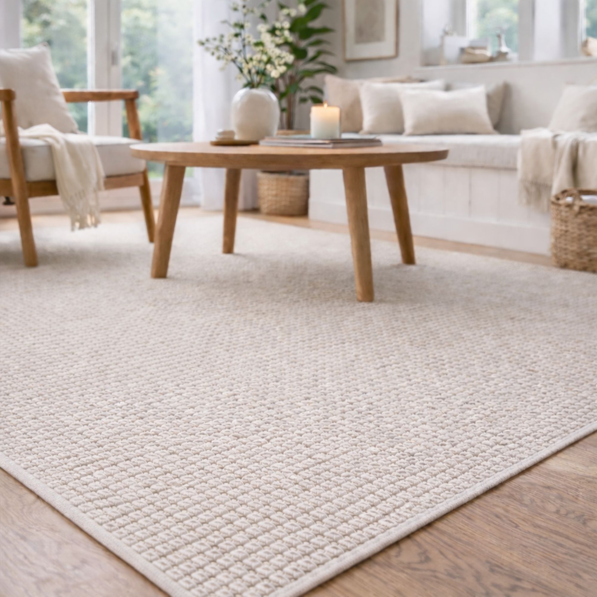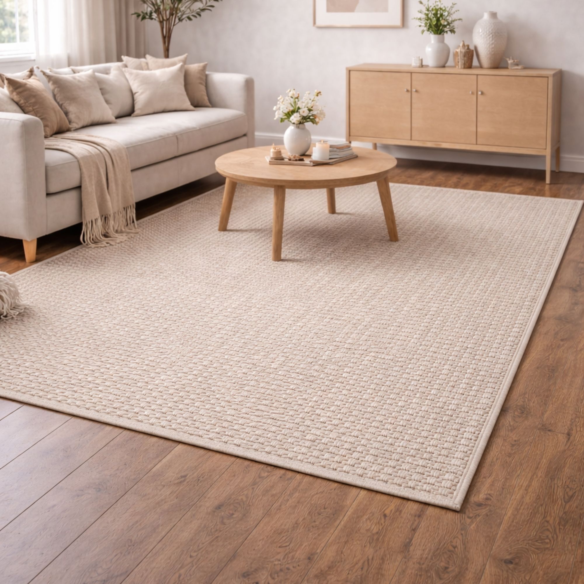 Elegant beige gulvtæppe som er det perfekte valg, hvis du ønsker et tidløst design, som skaber lidt ekstra stil i hjemmet. Den fine struktur og den lyse, naturlige farve giver rummet et mere harmonisk udtryk, som passer ind i i et hvilket som helst hjem. Tæppet er ideelt i stuen under sofabordet, i soveværelset eller som et blødt og indbydende element i entréen. Gulvtæppet er lavet i et slidstærkt og praktisk materiale. Det gør tæppet modstandsdygtigt over for daglig brug og velegnet til rum med aktivitet. Det sørger også for, at gulvtæppet står bedre fast. Du får et gulvtæppe, der både er funktionelt og flot i mange år. Med et Helsinki gulvtæppe kombineres komfort, holdbarhed og nordisk design i én løsning – et sikkert valg, hvis du ønsker et gulvtæppe, der både er praktisk og æstetisk tiltalende. Du kan finde det flotte gulvtæppe i flere forskellige størrelser og farver alt efter, hvad der bedst passer ind i dit hjem. Alle tæpperne er certificeret med STANDARD 100 by OEKO-TEX®, hvilket betyder, at gulvtæppet er testet for skadelige stoffer. Din tryghed for et produkt uden sundhedsskadelig kemi – og et sundere indeklima i hjemmet.