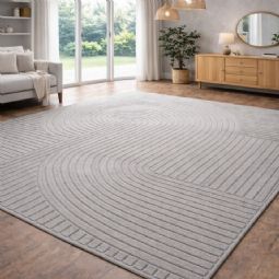 Dette flotte, store moderne gulvtæppe kan nemt løfte hele rummets udtryk - og kan det bl.a. fordi det kombinerer komfort, slidstyrke og et stilfuldt grafisk design i én løsning. Det grå tone-i-tone mønster med bløde, organiske buer pifter hjemmet op, og passer perfekt ind i både nordisk og minimalistisk indretning. Den grå nuance giver rummet et lyst og indbydende udtryk og fungerer flot sammen med alt fra lyse træsorter og beige toner til mere kontrastfyldte omgivelser.