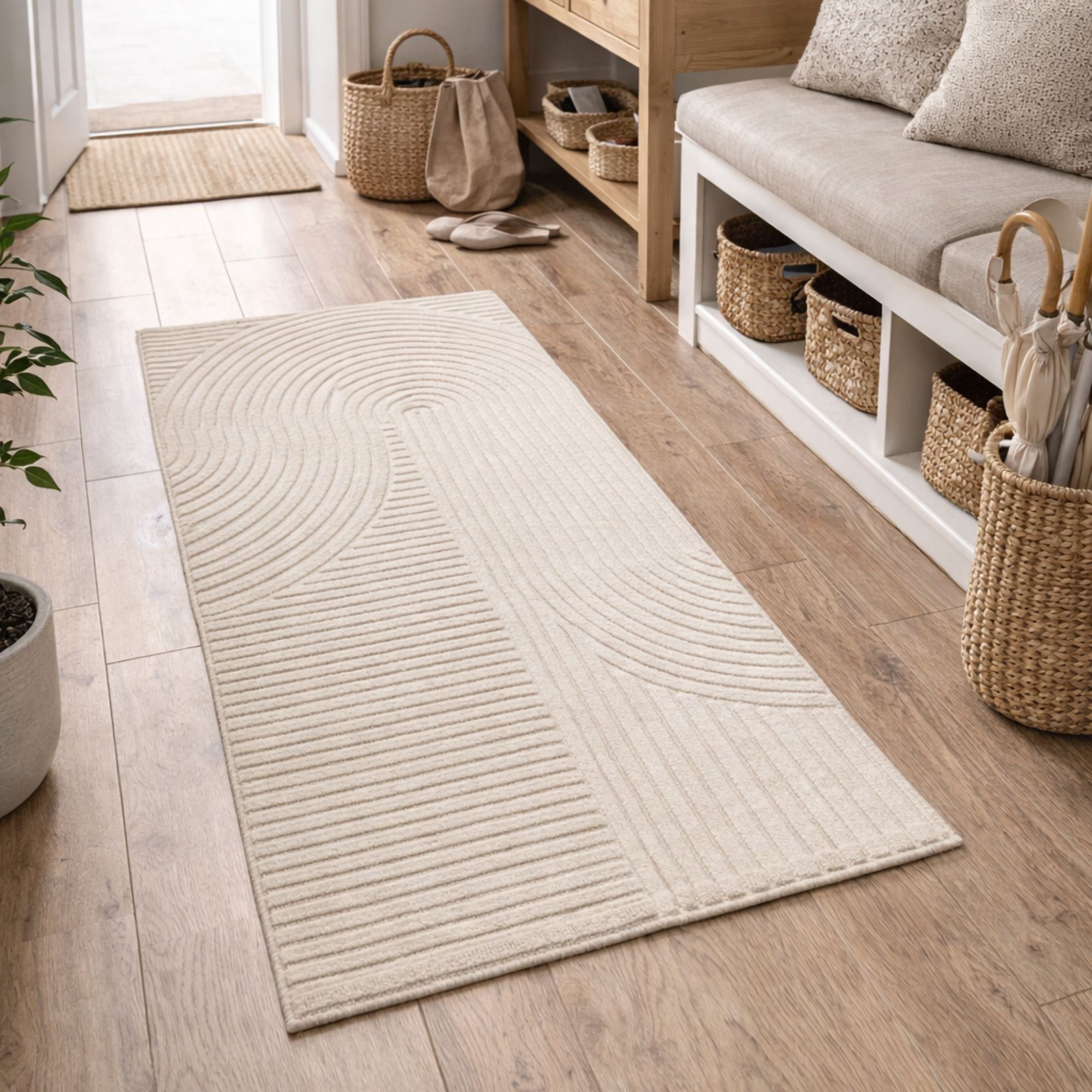 Med denne flotte, cremefarvede gulvløber fra serien "Elio" får du et gulvtæppe, der kombinerer komfort med høj slidstyrke - et oplagt valg til både stue, soveværelse, entré eller kontor. Materialet har smudsafvisende egenskaber, som gør det nemt at holde tæppet pænt i hverdagen. Et gulvtæppe er en enkel og effektiv måde at skabe varme og hygge i vores hjem på. Det giver rummet en behagelig atmosfære, dæmper akustikken og giver en komfortabel fornemmelse under fødderne – især på kolde gulve.