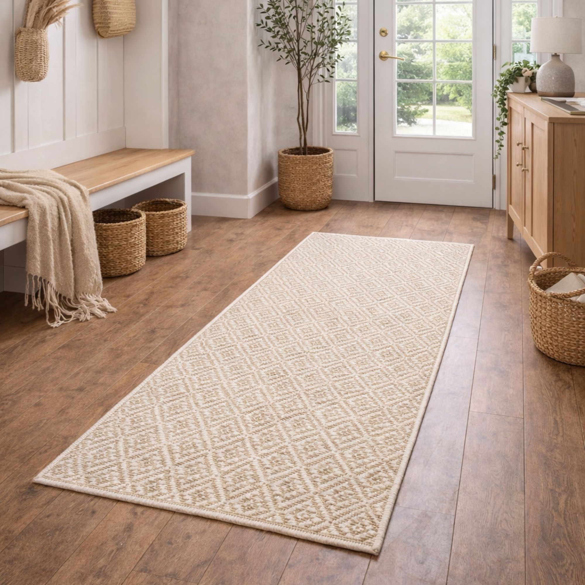 Savner du en enkel og nem måde at skabe noget helhed i dit hjem? Så kan dette flotte gulvtæppe kan være dét element, der binder indretningen sammen.