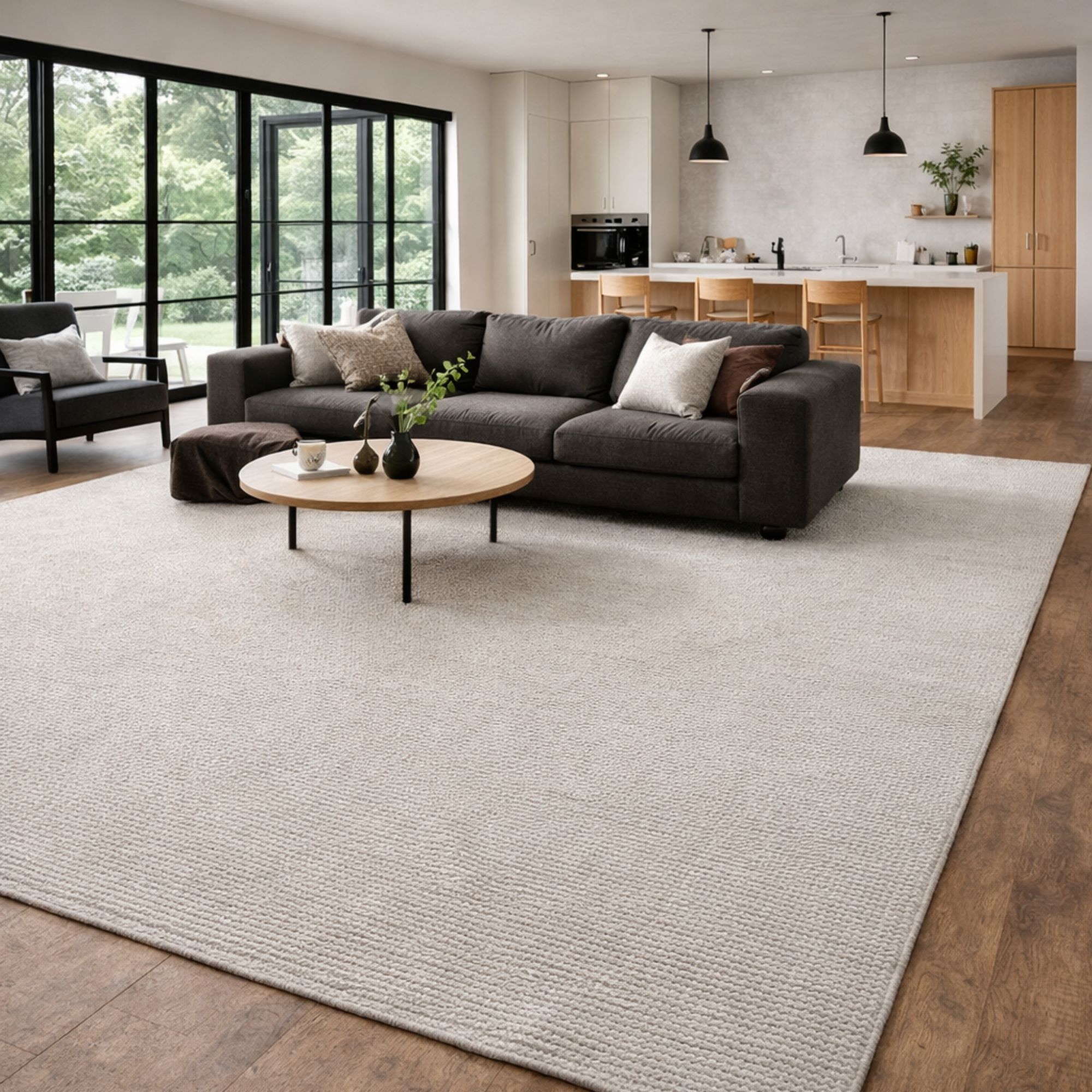 Fordi tæppet har en fladvævet struktur, kan det være et godt tæppe at have under spisebordet, hvor stole let kan trækkes frem og tilbage. Det ligger stabilt på gulvet og fungerer som base under sofabordet eller som samlende element i større rum. Det minimalistiske design gør det nemt at kombinere med både moderne og klassiske indretningsstil. Fordelen ved dette gulvtæppe er også, at det er formfast og modstandsdygtigt, hvilket gør, at det holder sig flot over tid. Dette gulvtæppe er en løsning, der både er praktisk i hverdagen og æstetisk i indretningen - og som skaber helhed i hjemmet.