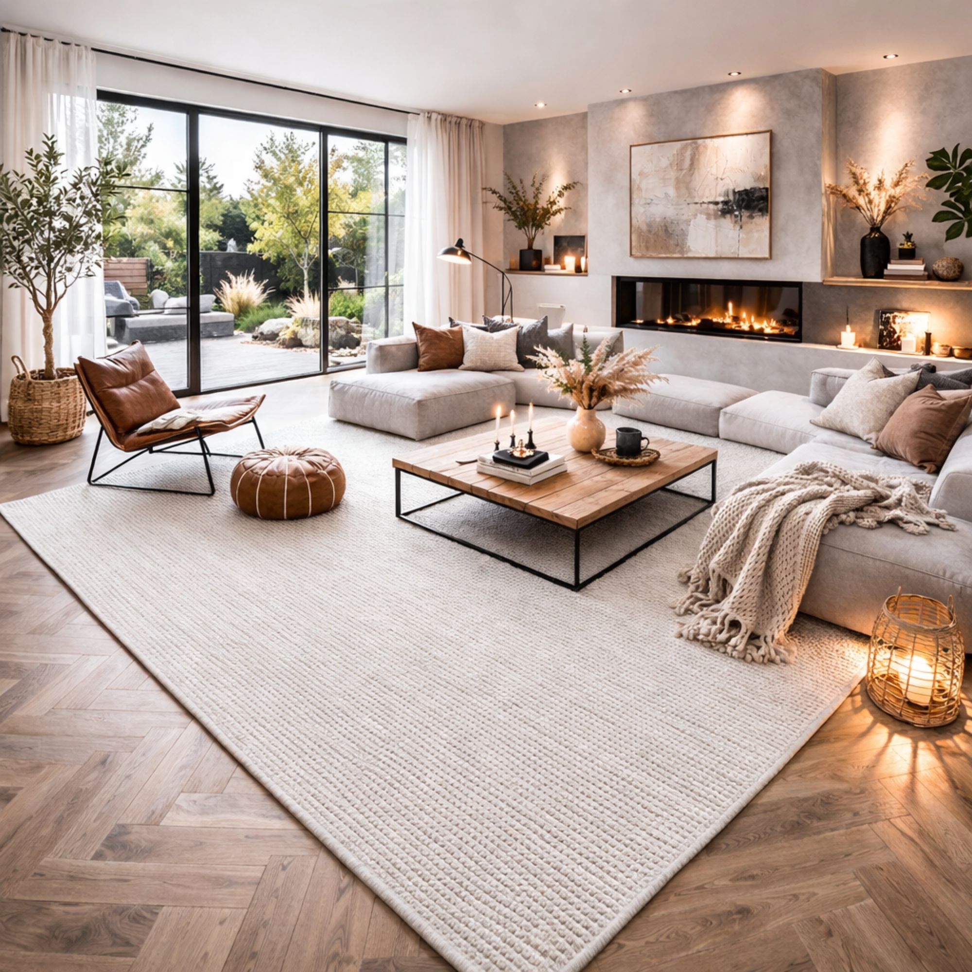 Savner du en enkel og nem måde at skabe noget helhed i dit hjem? Så kan dette ekstra store flotte gulvtæppe kan være dét element, der binder indretningen sammen.