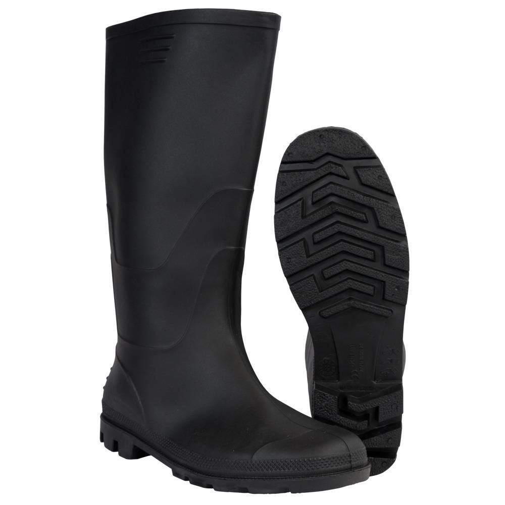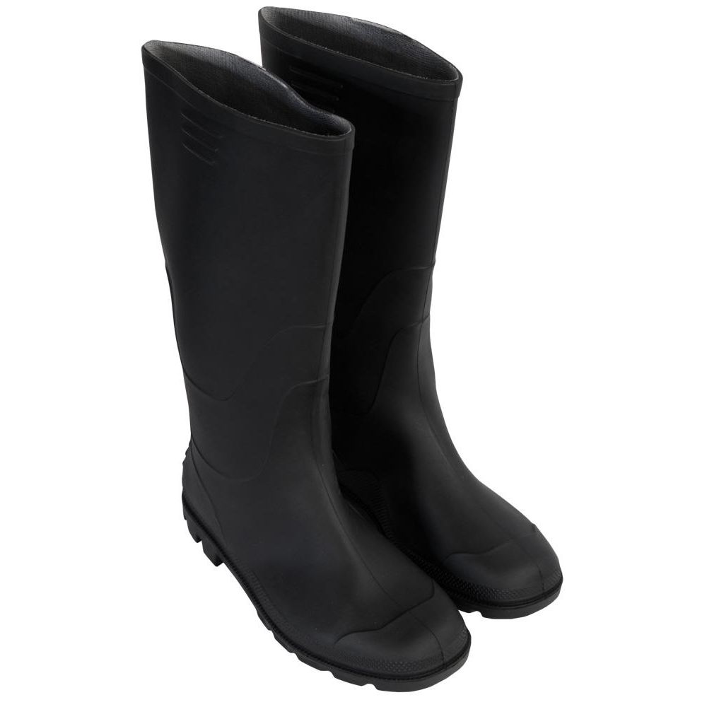 Sorte gummistøvler i klassisk unisex design, der kombinerer funktionalitet og komfort til hverdagsbrug. Disse gummistøvler i størrelse 46 er fremstillet i slidstærk PVC, som effektivt holder dine fødder tørre i vådt vejr.